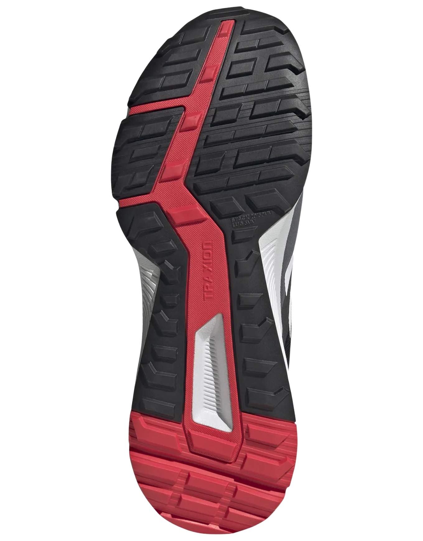 Soulstride Grey Four/Dash Grey/Pure Ruby, chaussure de trail running homme Adidas, combine tige mesh technique et semelle Traxion pour stabilité et adhérence sur tout terrain. Légère, amortie en EVA durable, elle intègre plus de 50 % de matériaux recyclés.