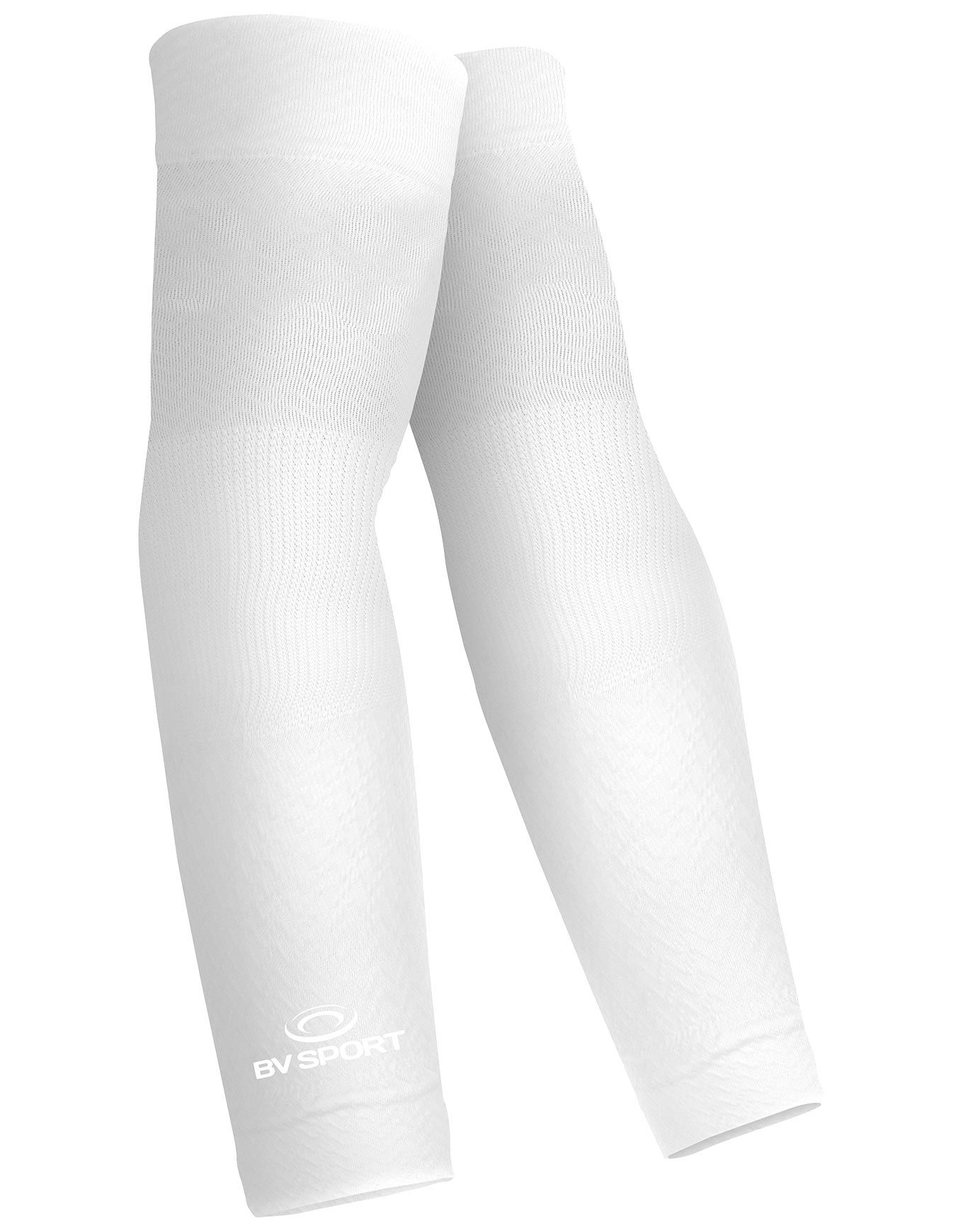 Manchettes BV Sport ARX Evo Blanc pour bras, conçues pour le running et le trail : maintien musculaire, réduction des vibrations, zones respirantes Airgon et ajustement Morphotech.