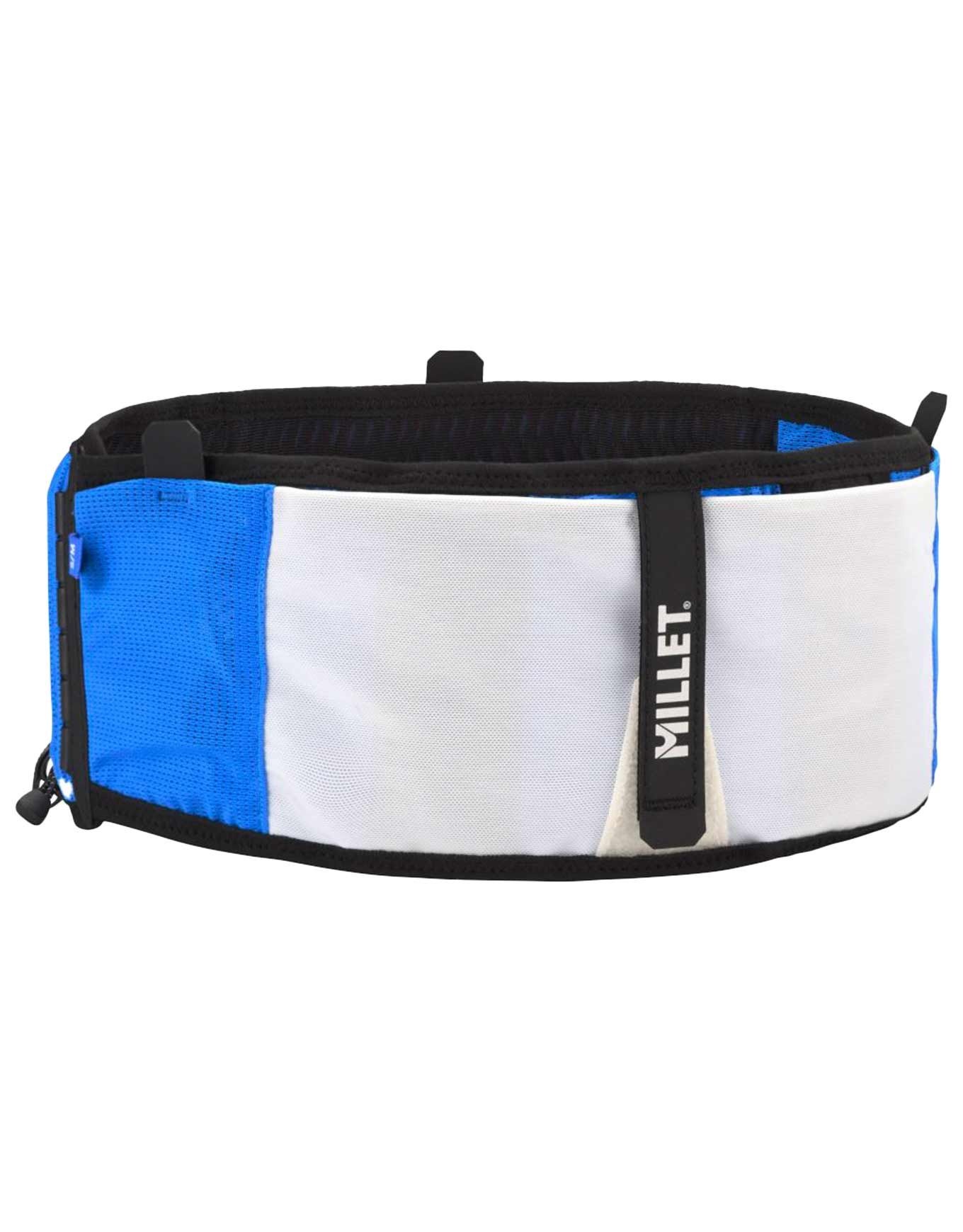 Millet Intense Belt White/Icon Blue est une ceinture de trail respirante d’un litre, ajustable par cordon élastique, dotée de poches latérales, porte-flasques, porte-bâtons et sifflet de sécurité pour vos sorties rapides en sentier.