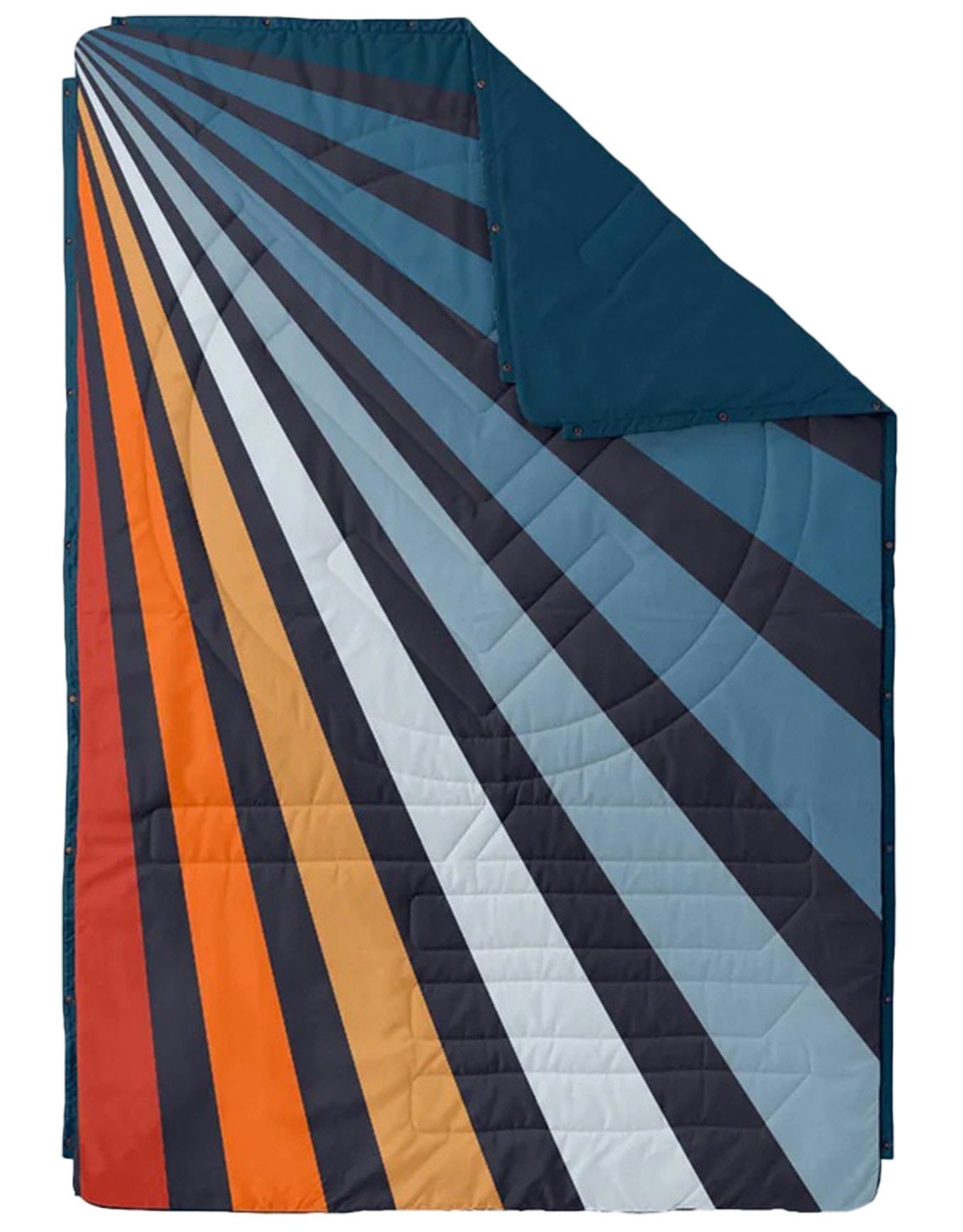 La marque Voited propose avec sa Ripstop Blanket Vibes une couverture de camping aux multiples fonctions. Confectionnée en ripstop polyester recyclé REPREVE® doté d’un traitement déperlant DWR sans PFC, cette pièce allie résistance et écologie. L’isolant 3D Featherlight procure à la fois chaleur et respirabilité : la chaleur est conservée tandis que l’humidité est évacuée. Avec son indice de confort thermique fixé à 13°C, cette couverture assure une protection optimale contre la fraîcheur durant les escapades estivales.