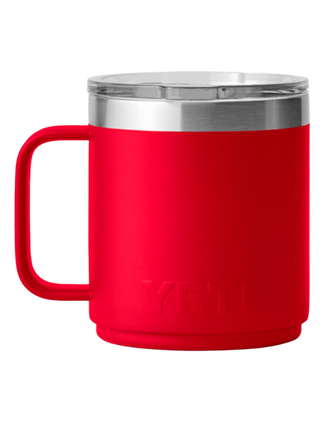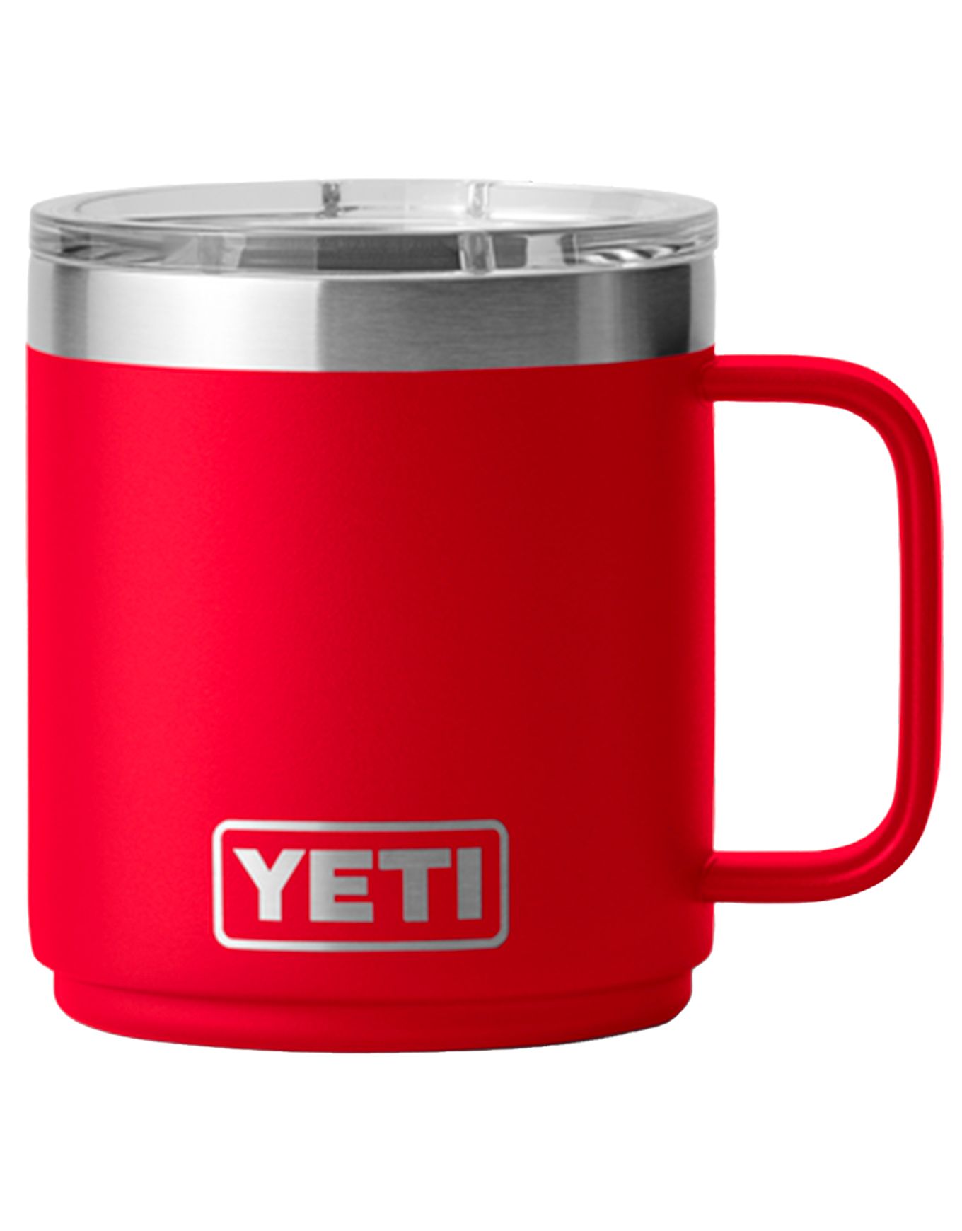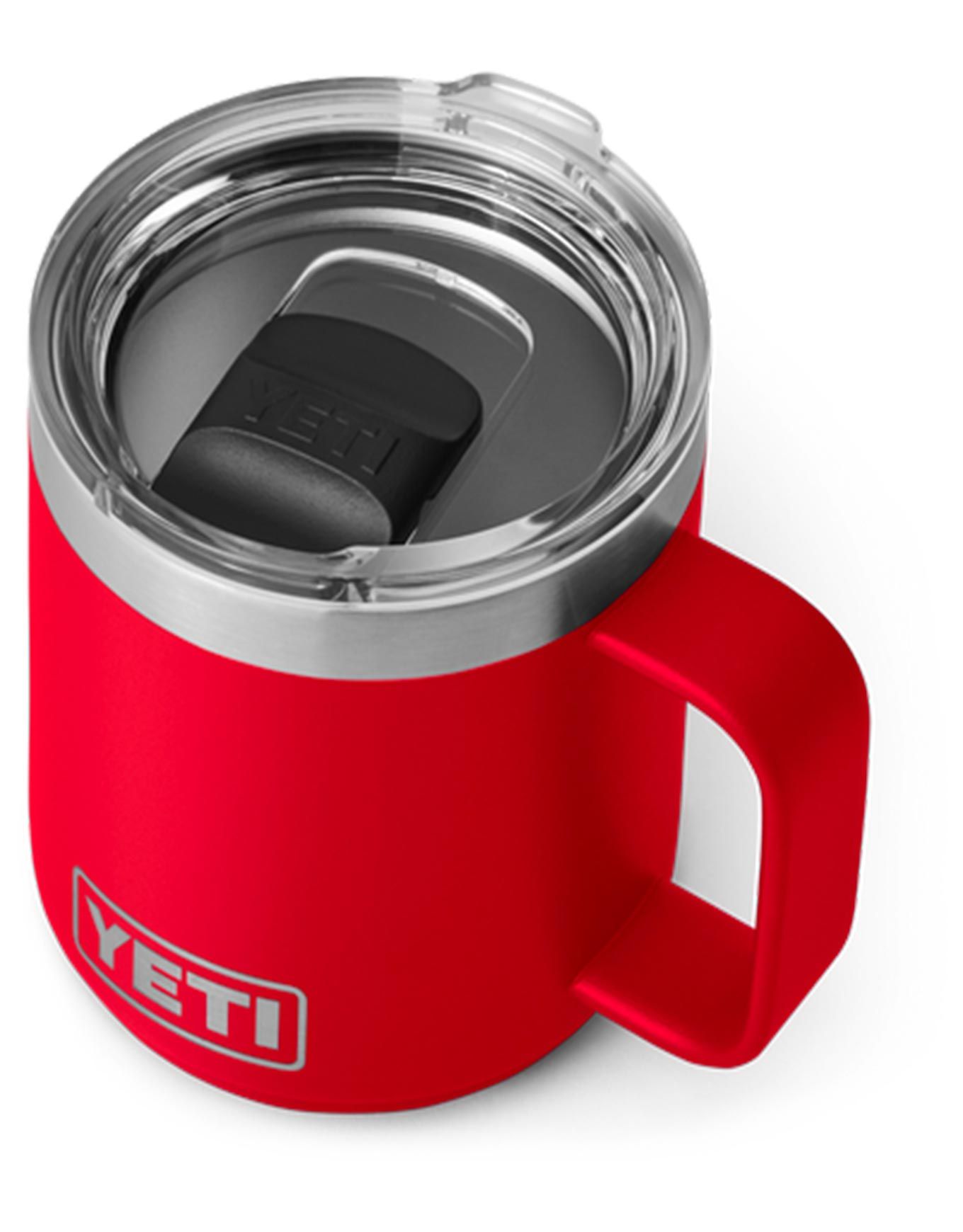 La tasse isotherme Yeti Rambler 10 oz Mug Rescued Red en acier inoxydable maintient boissons chaudes ou froides des heures grâce à son isolation double paroi sous vide ; anse confortable et couvercle MagSlider™ aimanté.