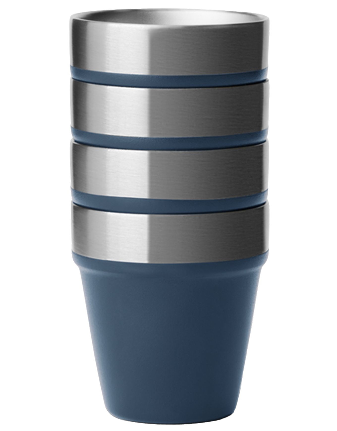 Yeti Rambler Shot Glasses Navy : kit de 4 verres à shot en acier inoxydable 18/8 empilables, isolation double paroi maintenant la température idéale, boîte de transport comprise.