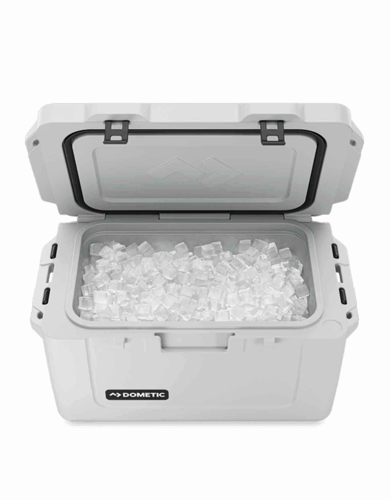 Glacière Dometic Patrol Icebox 20 L en PU isolant à parois épaisses, maintient le froid plusieurs jours, s’ouvre latéralement, se nettoie facilement et accueille accessoires optionnels.