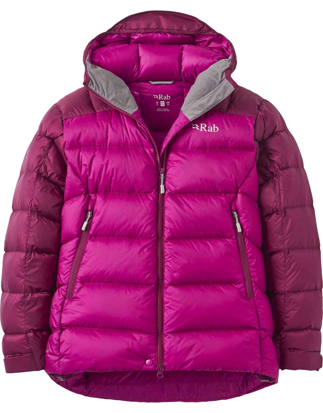 La doudoune Rab Neutrino Pro Hoody bordeaux pour homme conjugue duvet européen traité déperlant, tissu Pertex® Quantum Pro résistant à la neige et capuche compatible casque pour une chaleur concentrée et une liberté de mouvement en haute montagne.
