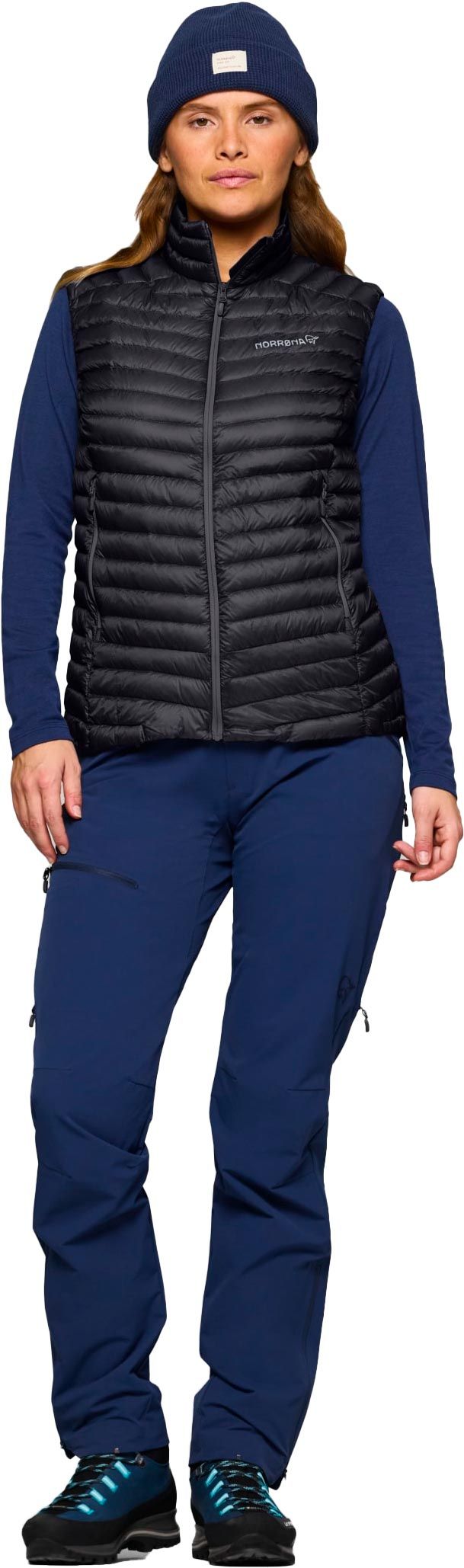 La doudoune Trollveggen Down800 Super Light Vest de Norrona, conçue pour l’alpinisme féminin, allie duvet 800 CUIN et tissu aeroDownproof pour un rapport chaleur/légèreté optimal dans les ascensions hivernales.