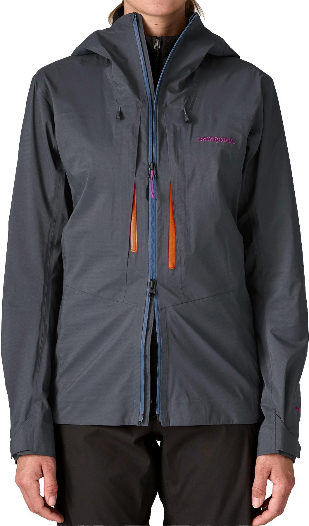 La veste alpine Patagonia M10 Storm Jkt Smolder Blue 3 couches H2No pour femme allie légèreté, coupe-vent, imper-respirabilité et liberté de mouvement pour l’alpinisme par tous temps. Capuche casque-compatible, grandes poches poitrine baudrier-compatibles, poignets et bas réglables, rabat anti-tempête, réflecteur RECCO.