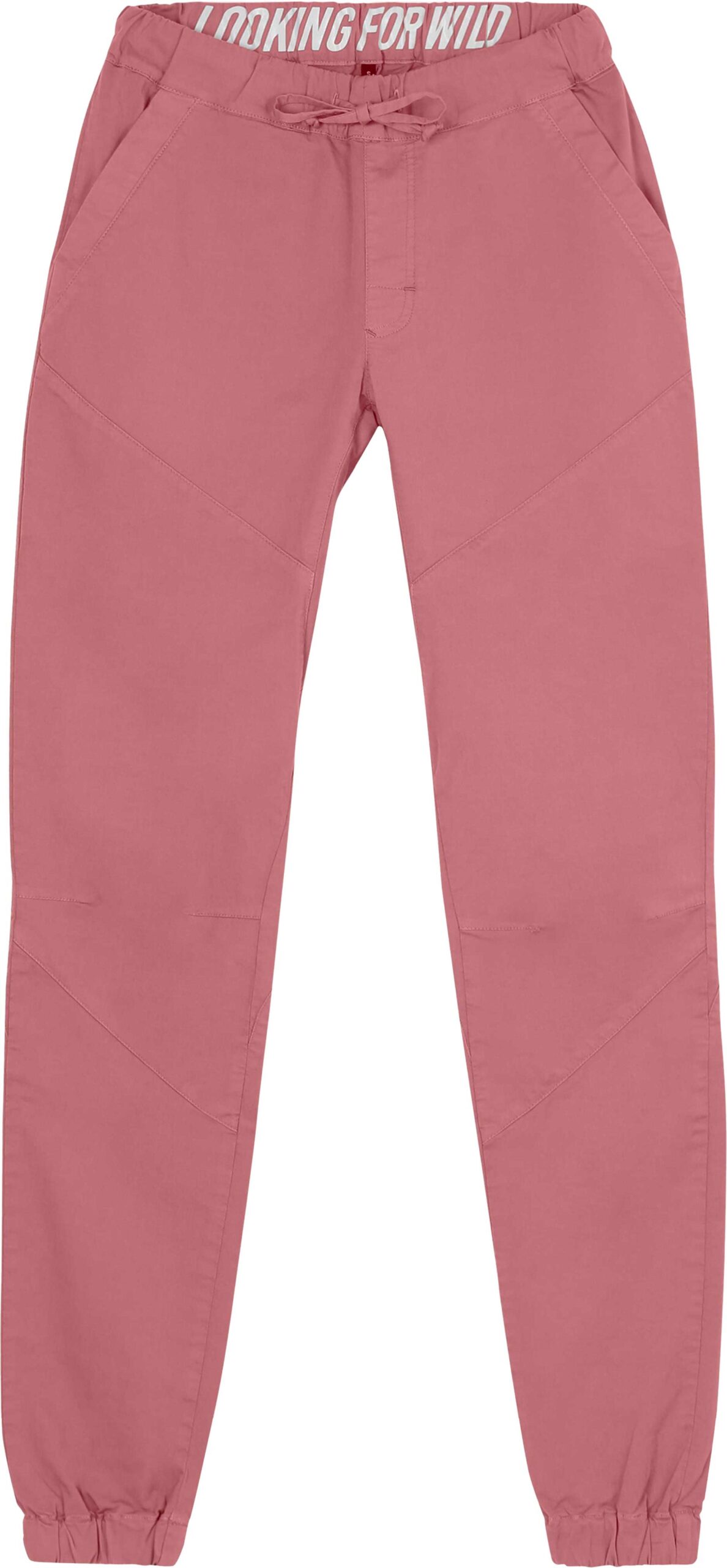 Looking For Wild Laila Dusty Rose, pantalon escalade femme en coton élasthanne ultra-stretch, coupe ajustée et taille élastiquée pour liberté de mouvement et maintien. Poches pratiques, style casual automne-hiver 2024/2025.