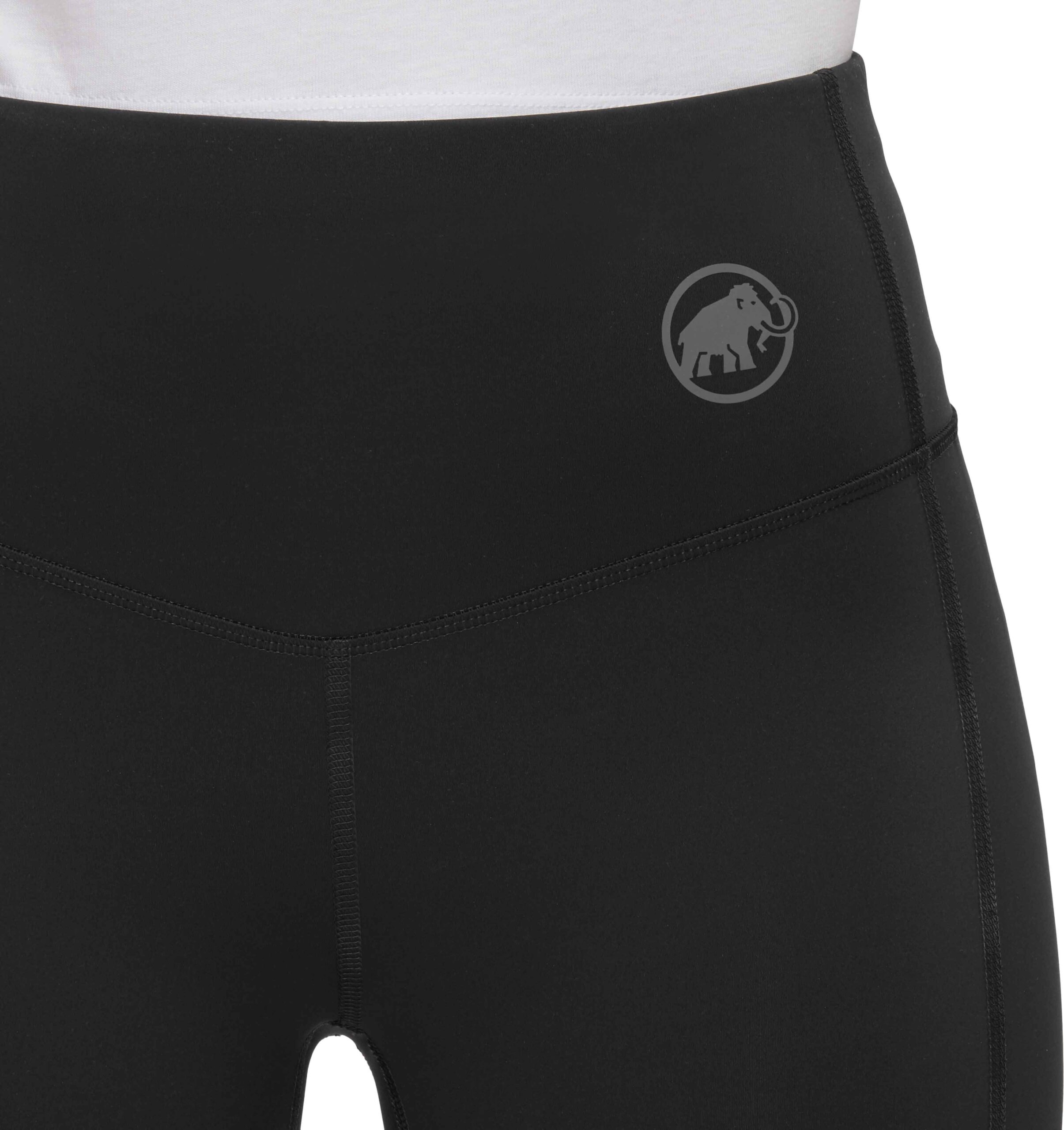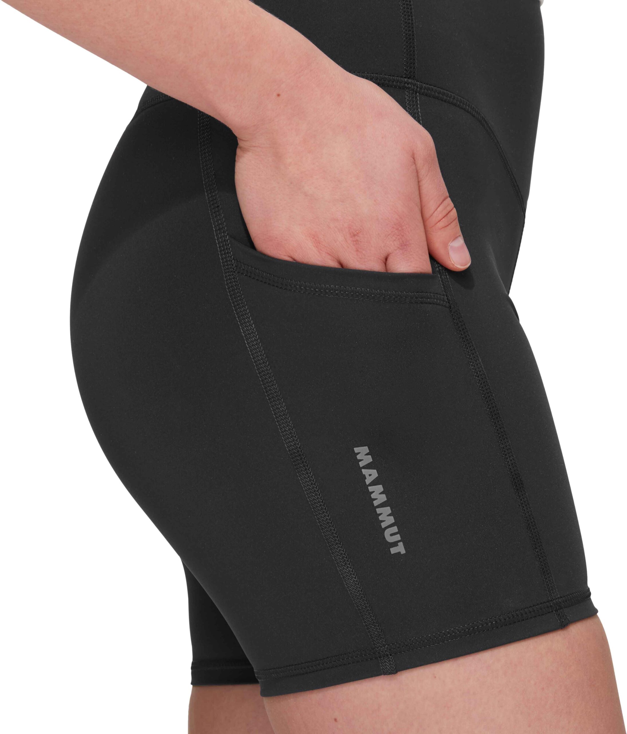 Collant short femme Mammut Massone Short Tights Black, taille haute et sans couture centrale pour un confort deuxième peau. Sa matière extensible offre liberté de mouvement et poche latérale pour smartphone.