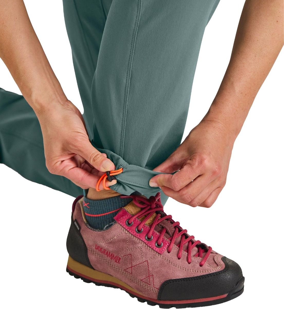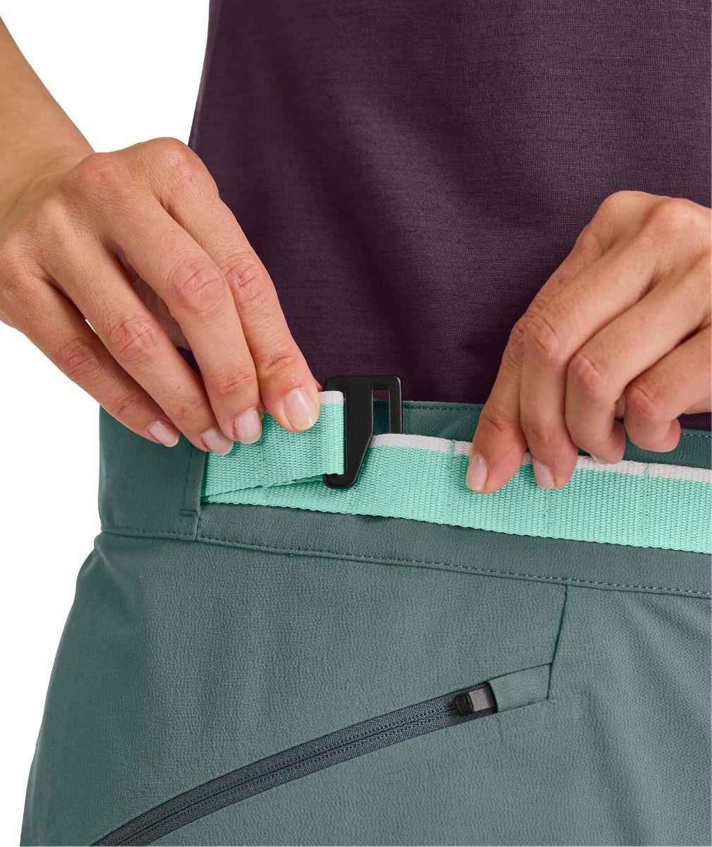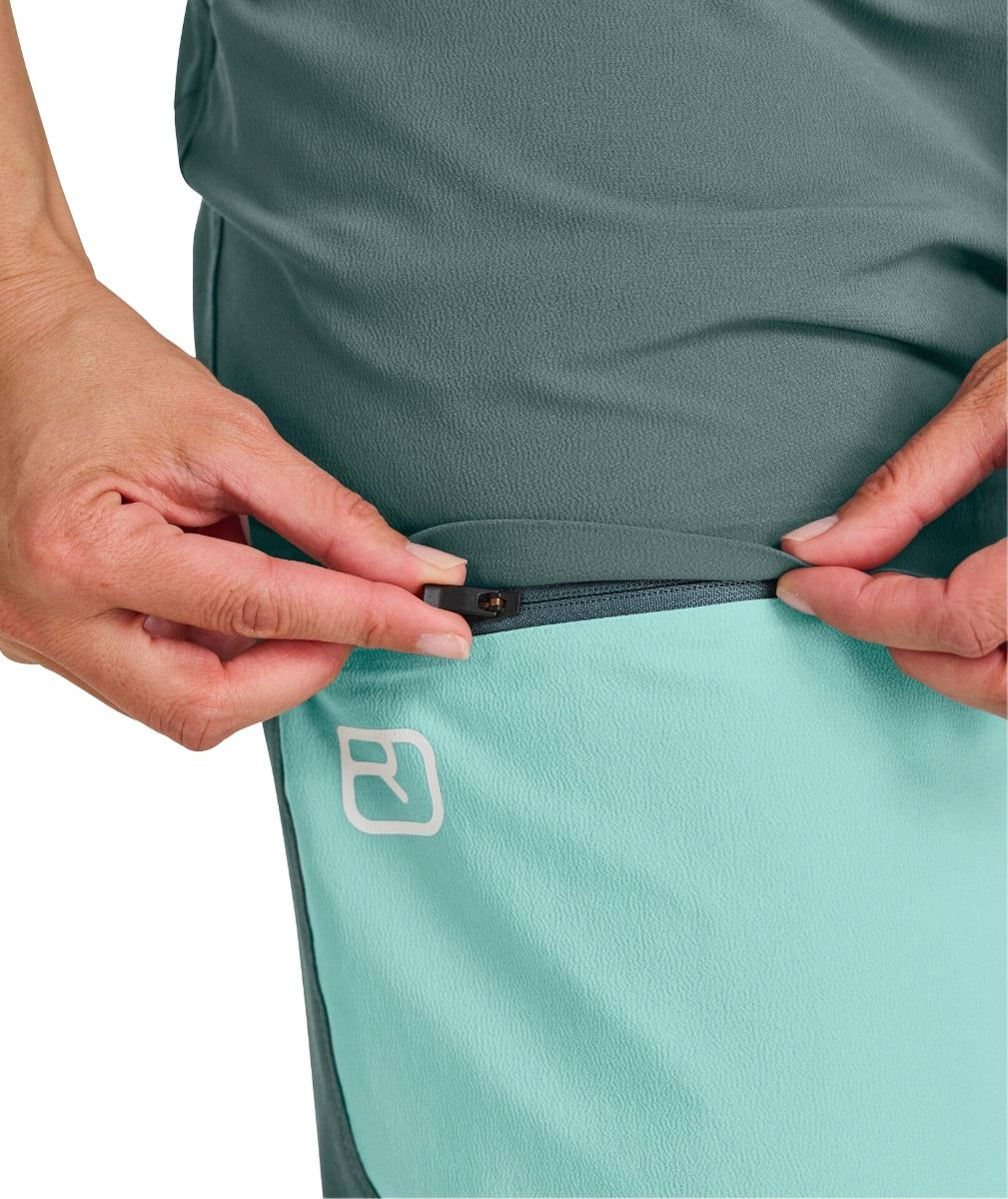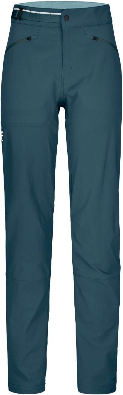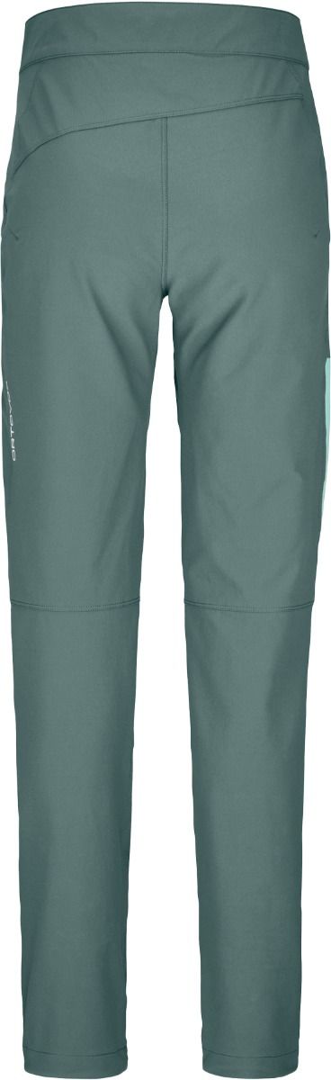 Pantalon Ortovox Brenta femme en laine mérinos chaude, stretch et respirant, coupe cintrée, ceinture et bas de jambe réglables, genoux préformés pour l’alpinisme.