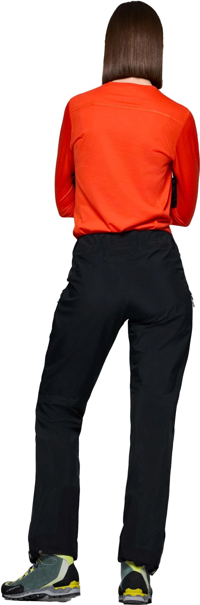 Le pantalon Norrona Falketind Gore-Tex Pants femme Caviar Black allie membrane GORE-TEX ePE imperméable et respirante, coupe droite ajustée, poches zippées, taille et bas de jambe réglables pour randonnée, ski ou alpinisme toutes saisons.