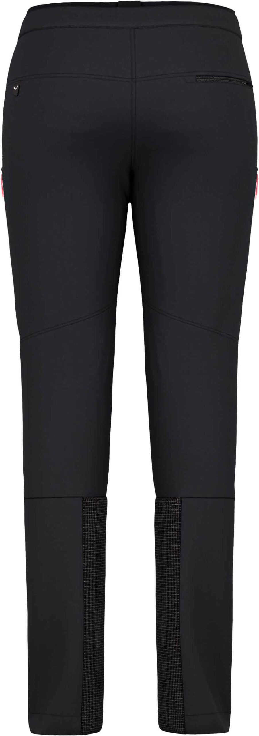 Pantalon technique Salewa Lagorai Durastrech Black Out femme : nylon bambou stretch, déperlant sans PFC, séchage rapide et anti-odeurs, renforts Cordura® aux chevilles, zips d’aération et compatibilité chaussures de ski.