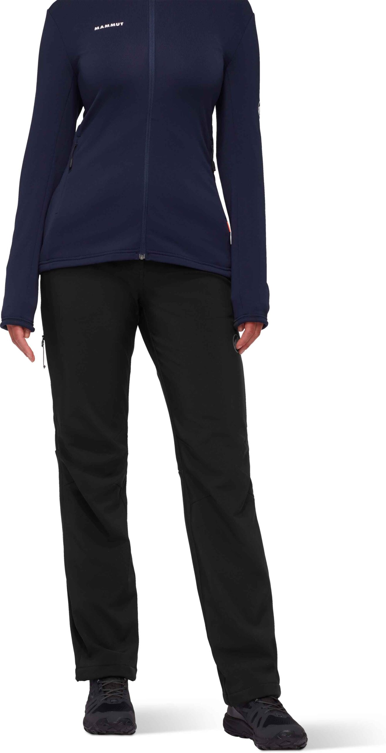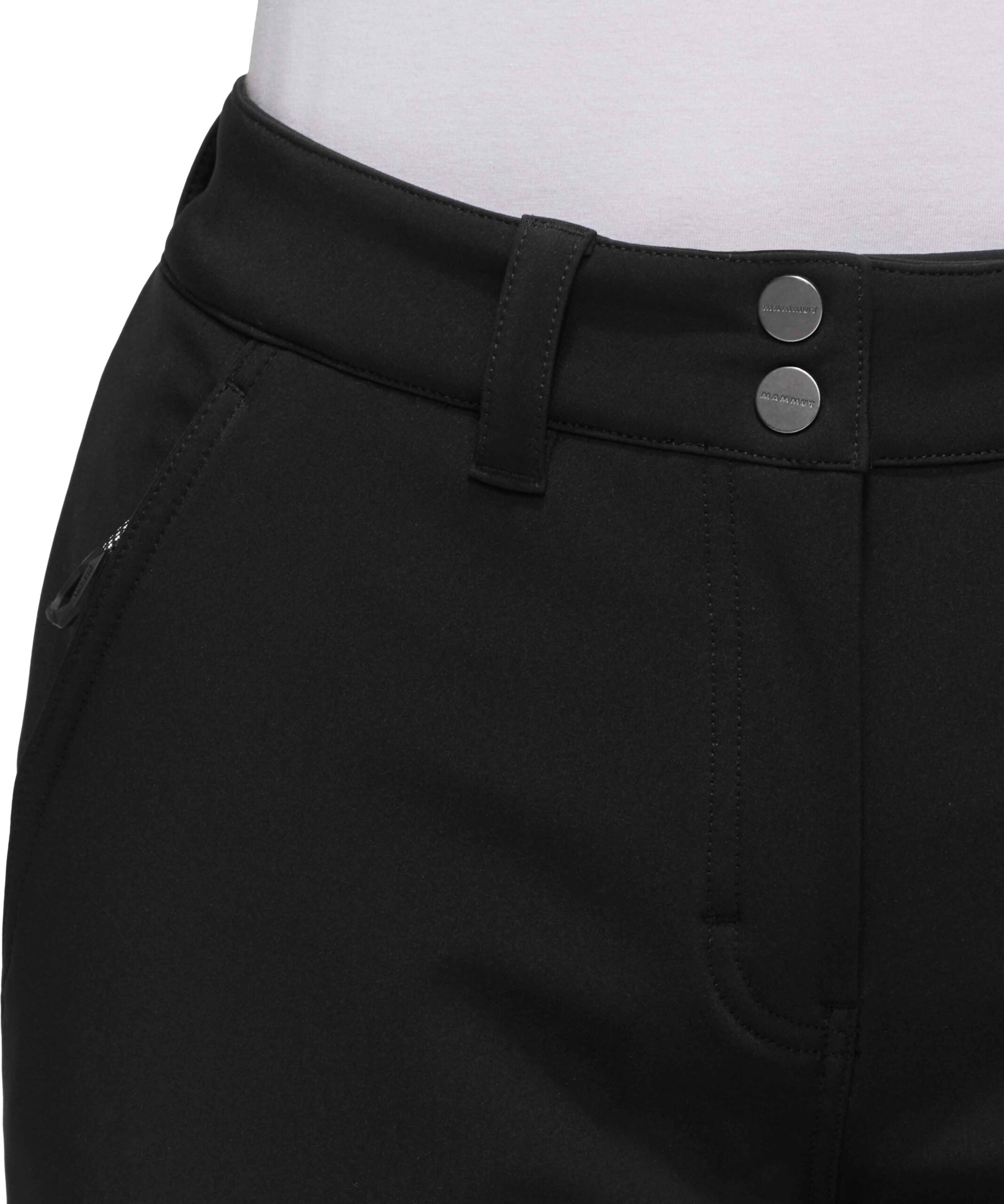 Le pantalon technique femme Mammut Runbold Winter SO Pants allie softshell extensible et doublure polaire pour la montagne hivernale.