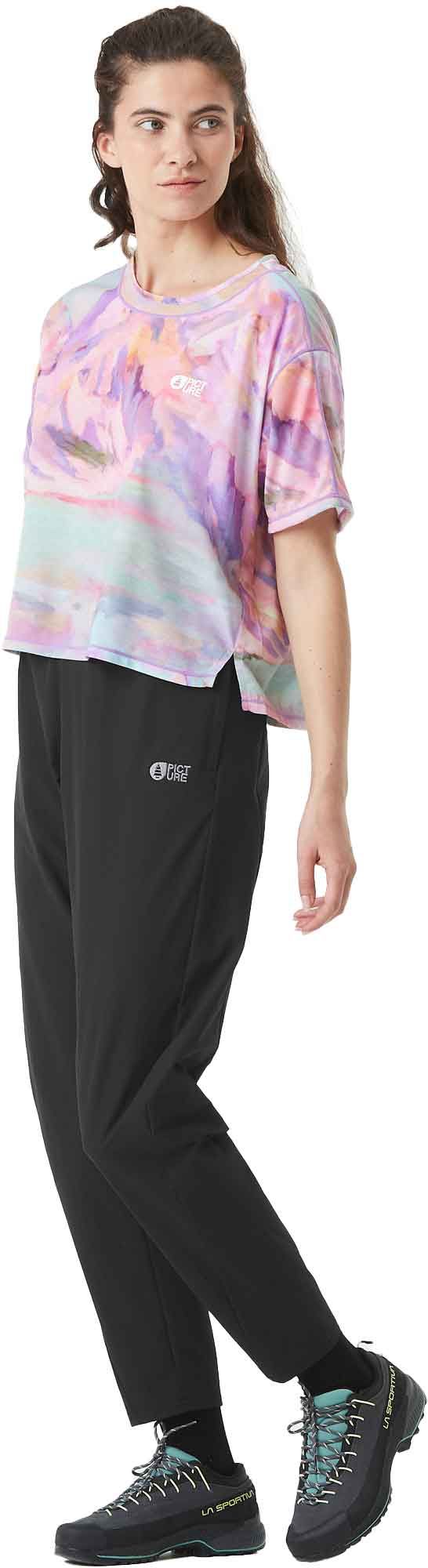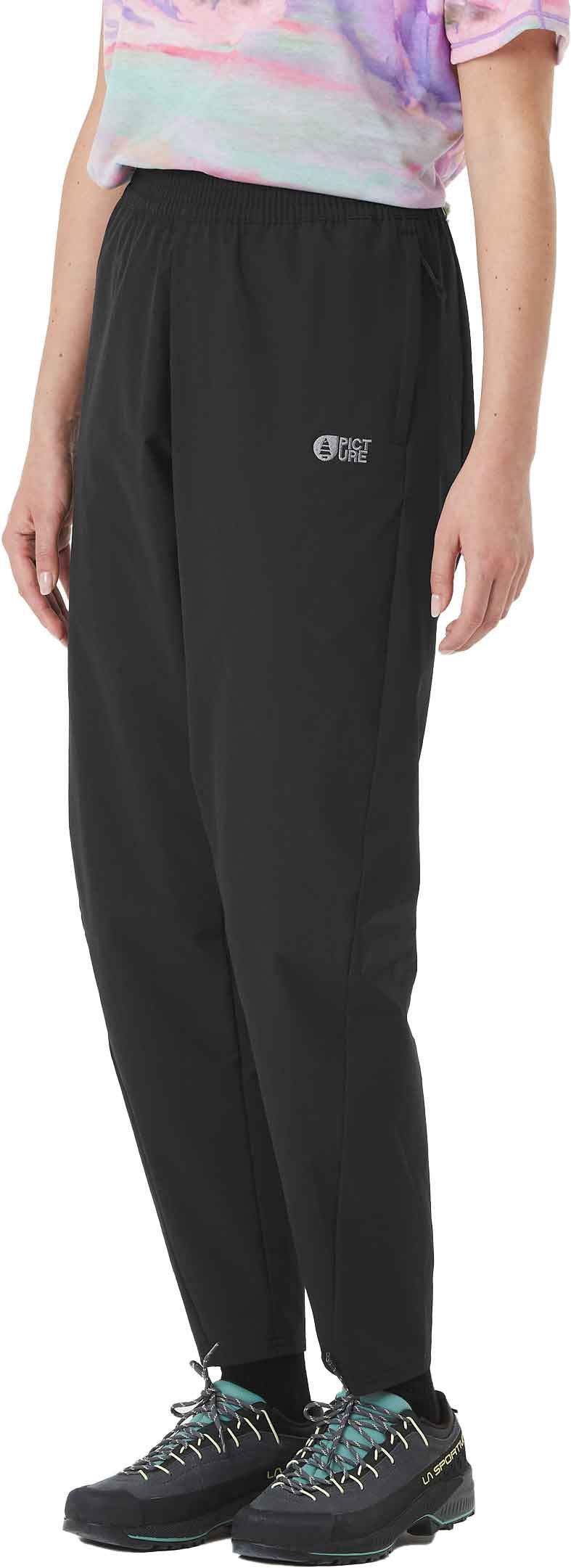 Pantalon Picture Organic Clothing Tulee Black pour femme, stretch 4 sens avec technologie Dry Now et traitement DWR pour évacuer l’humidité lors des randonnées estivales.