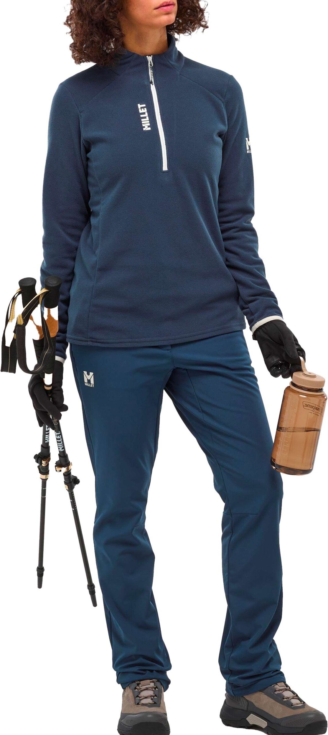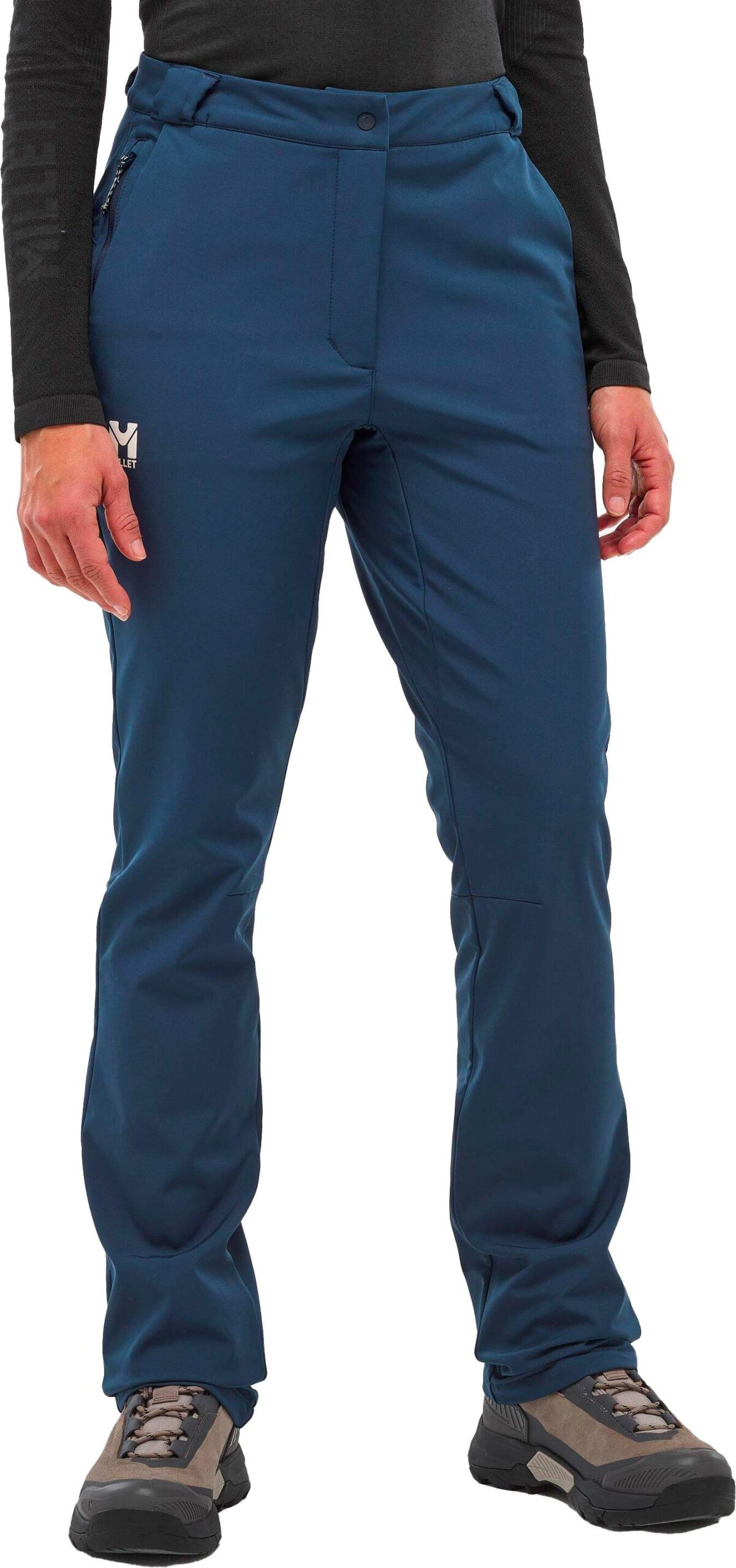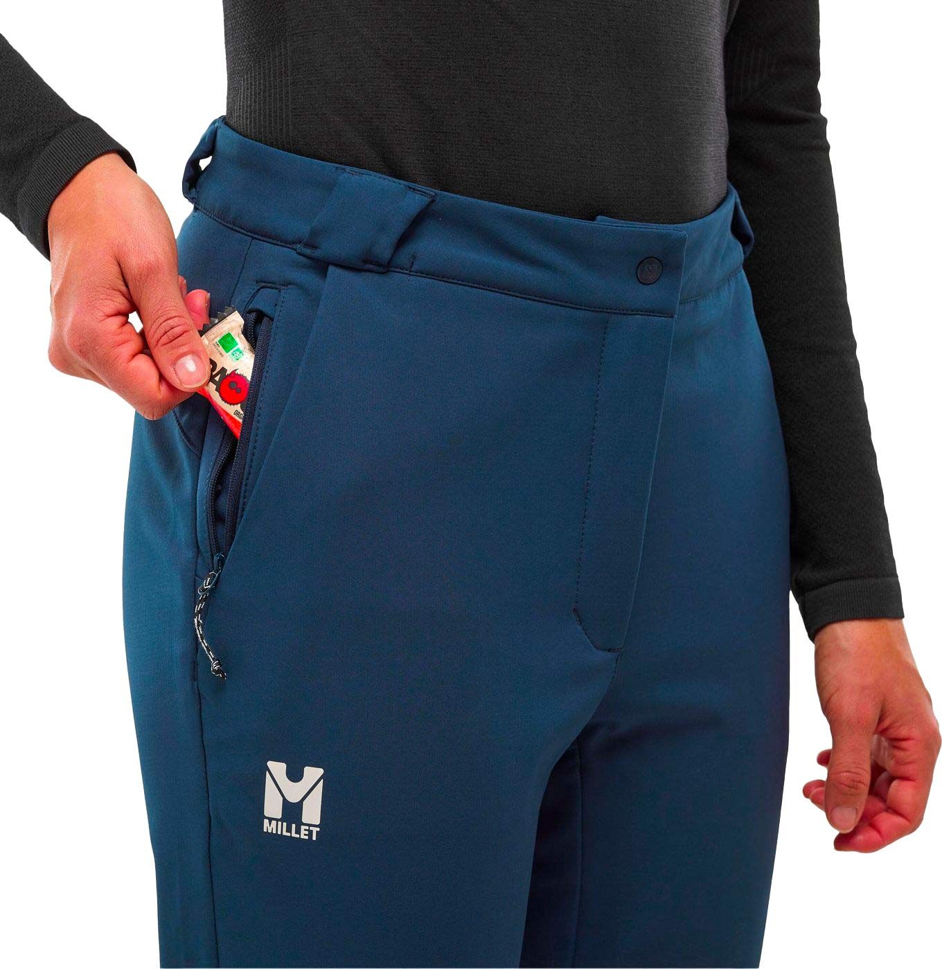 Millet Ubic Warm Pant Saphir, pantalon softshell stretch femme, intérieur brossé, DWR sans PFC, genoux préformés, 3 poches.
