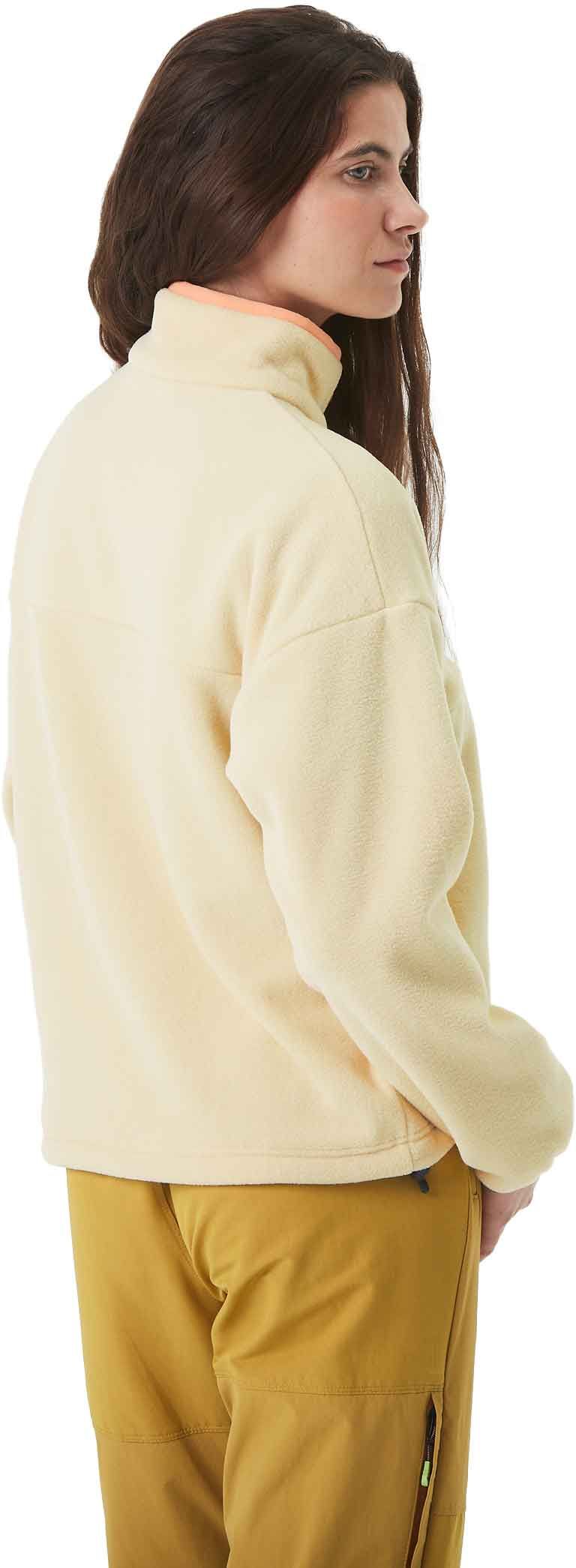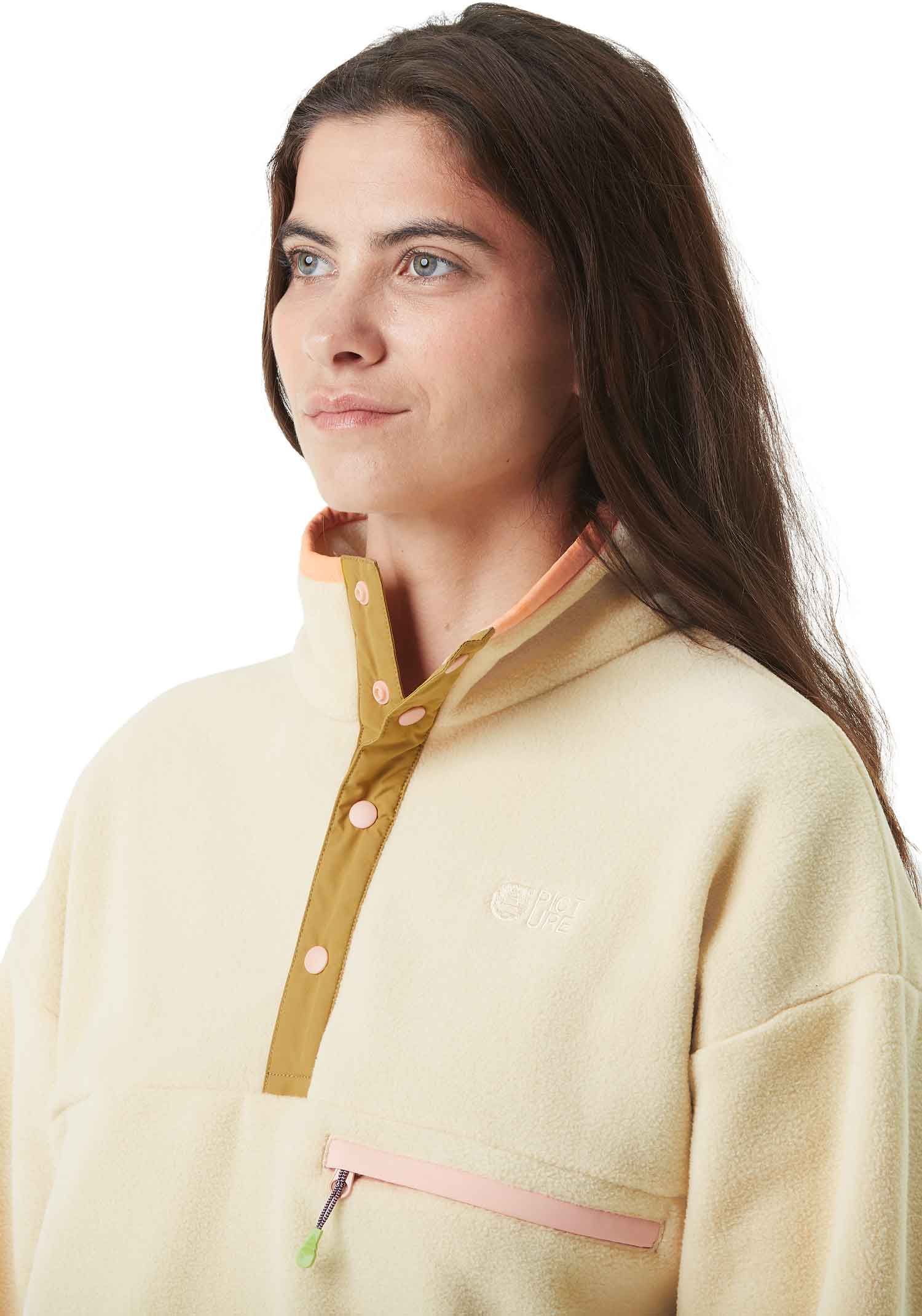 Picture Organic Clothing Arcca 1/4 Fleece Wood Ash femme : polaire chaude et respirante en Dry Now, col montant et boutons-pression, coloris doux et confection éco-responsable.