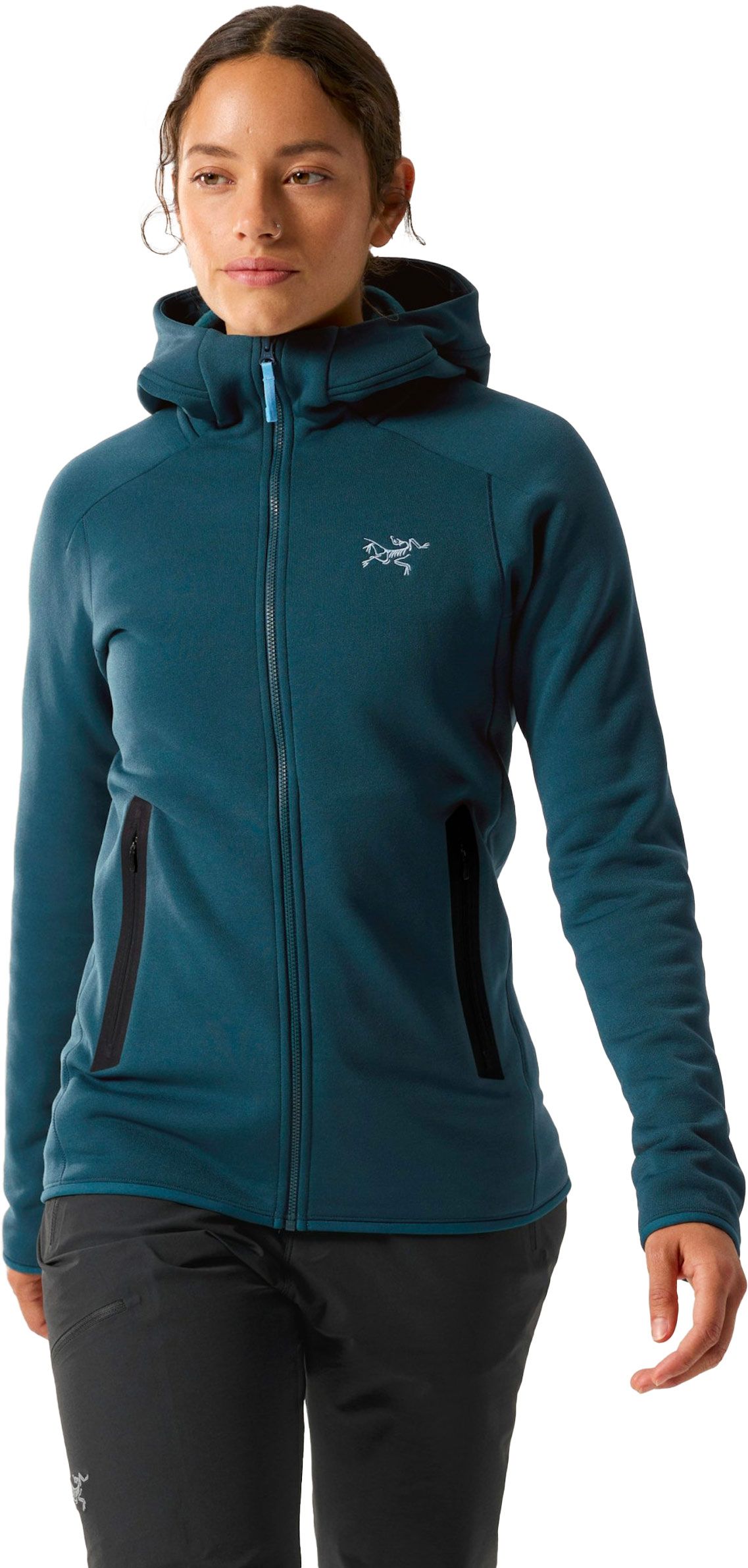 La polaire technique Arc’teryx Kyanite Hoody Midnight Frost pour femme, en Polartec Power Stretch® Pro, allie chaleur légère, respirabilité et séchage rapide. Stretch et coupe articulée pour une liberté de mouvement maximale en montagne par temps froid.