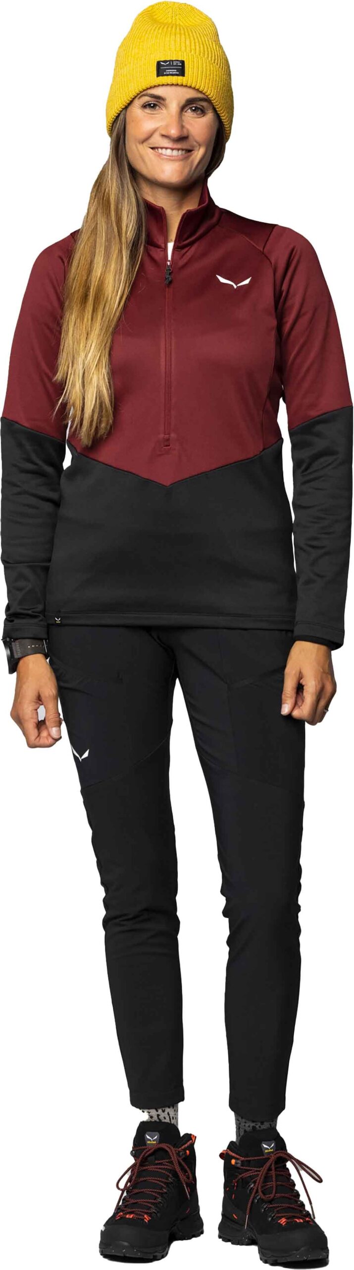 Veste polaire Salewa Puez Pl Syrah femme en Polarlite légère, compressible et extensible 4 S avec intérieur grille, col coupe-vent et coutures plates pour randonnée alpine.
