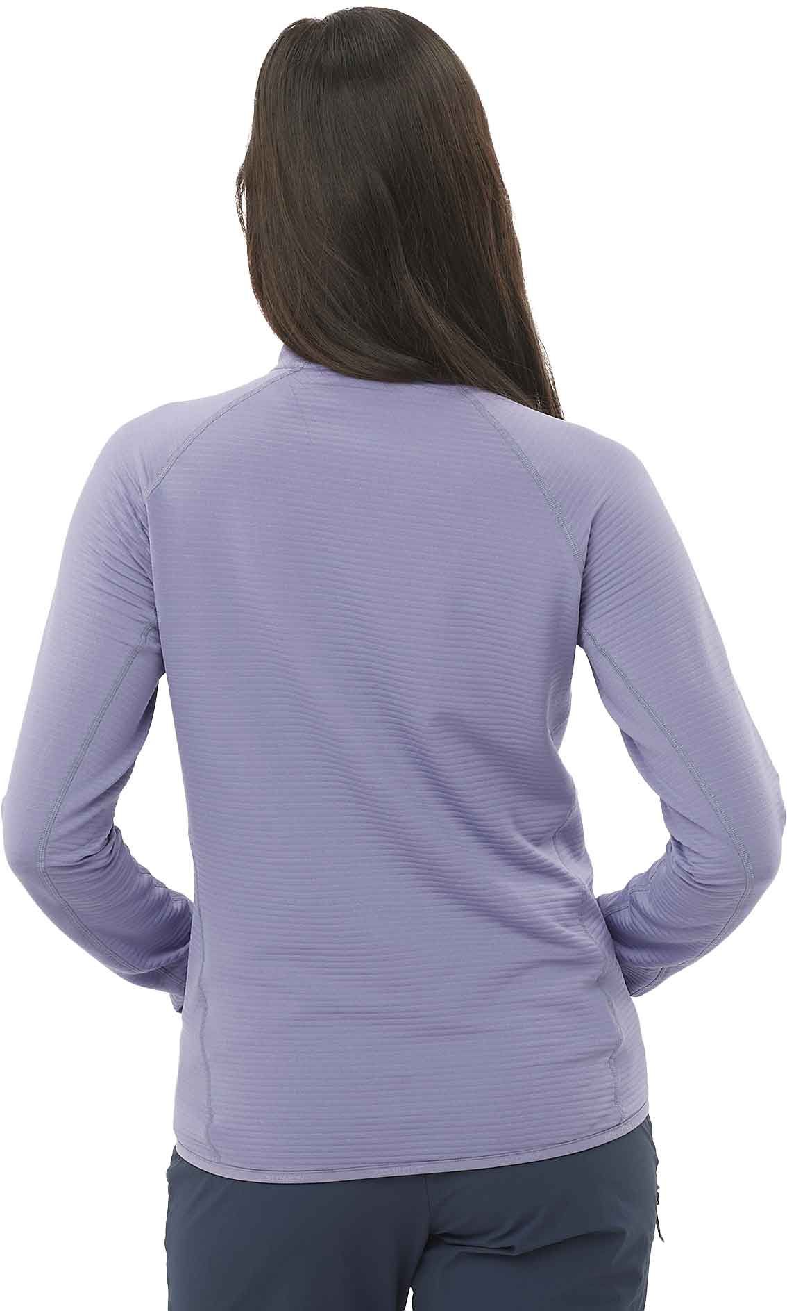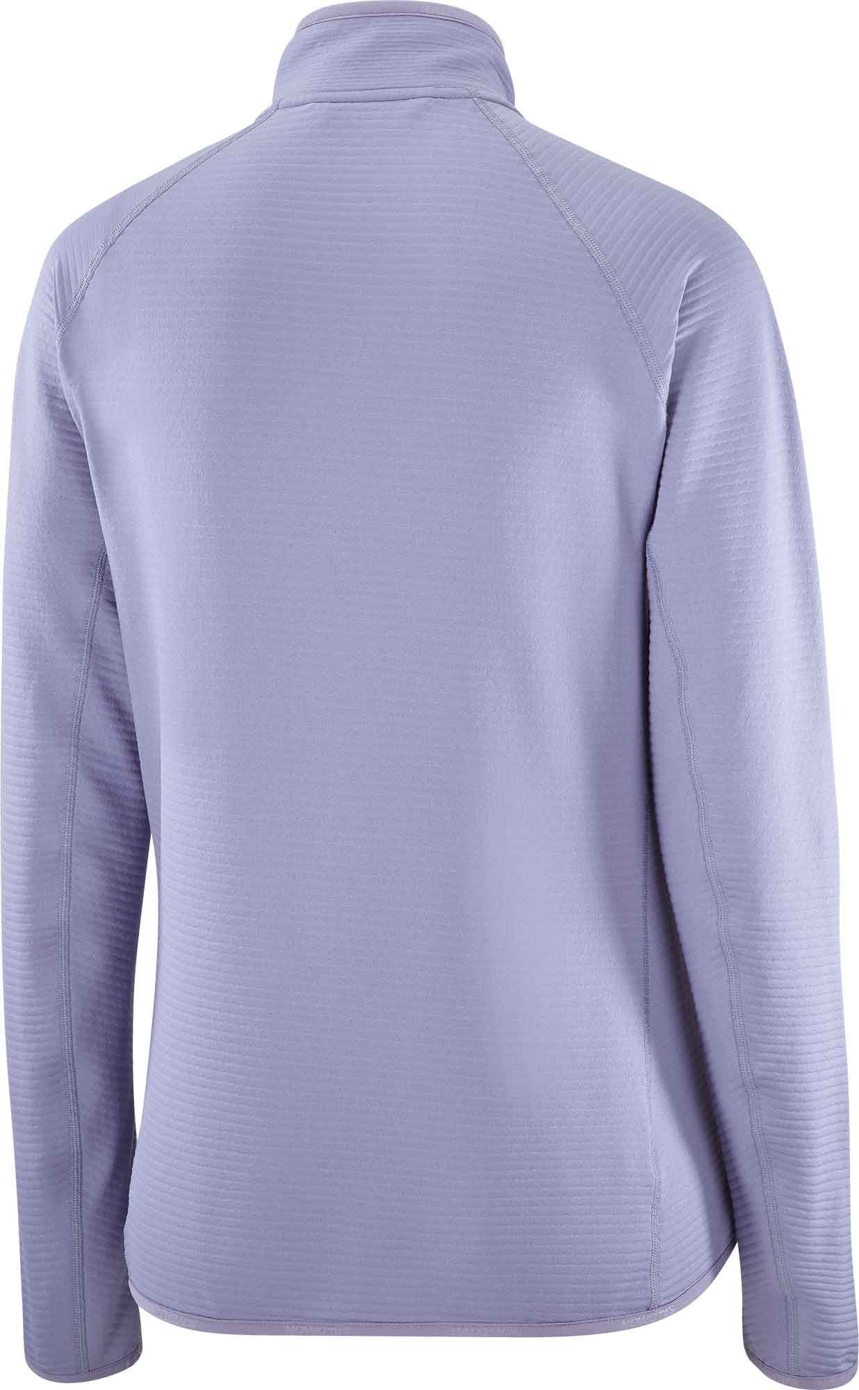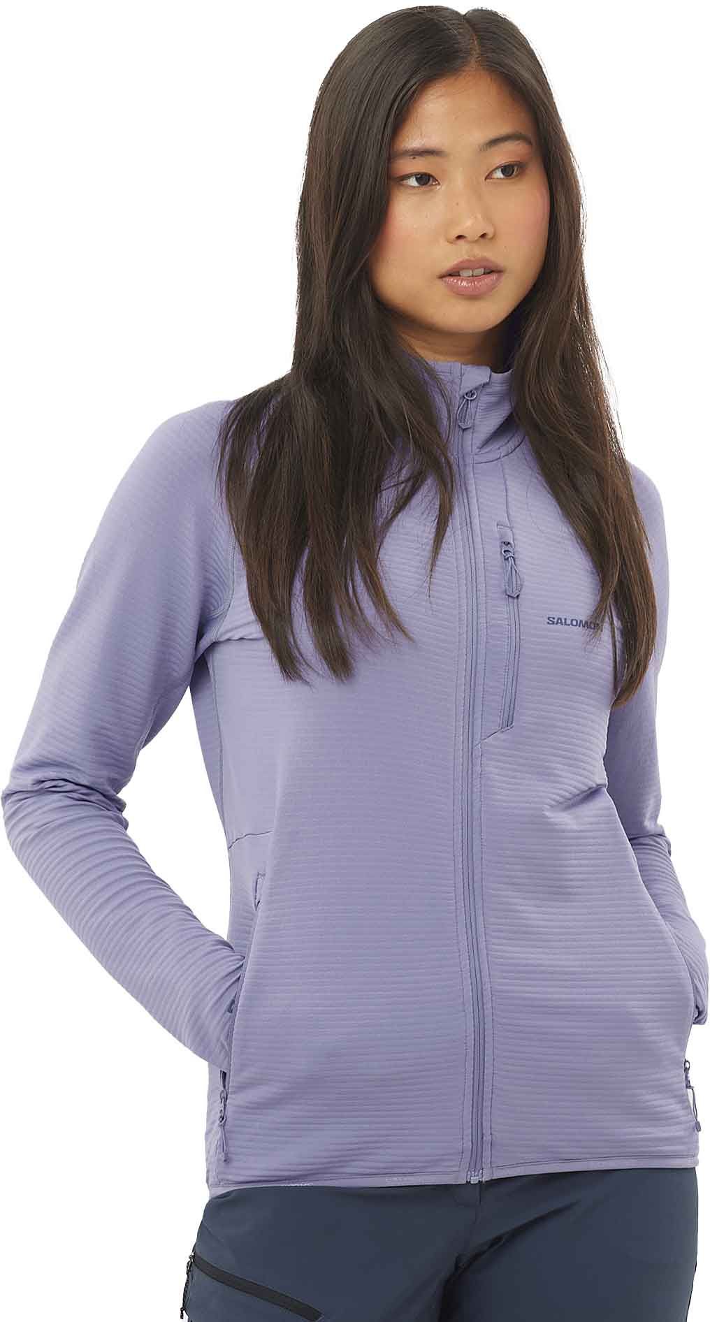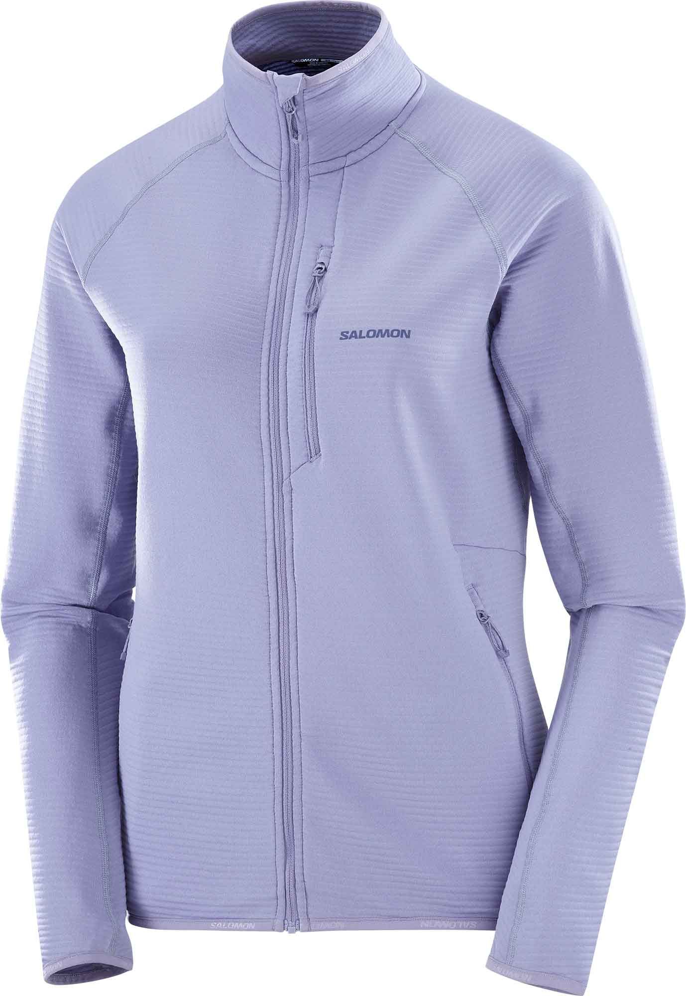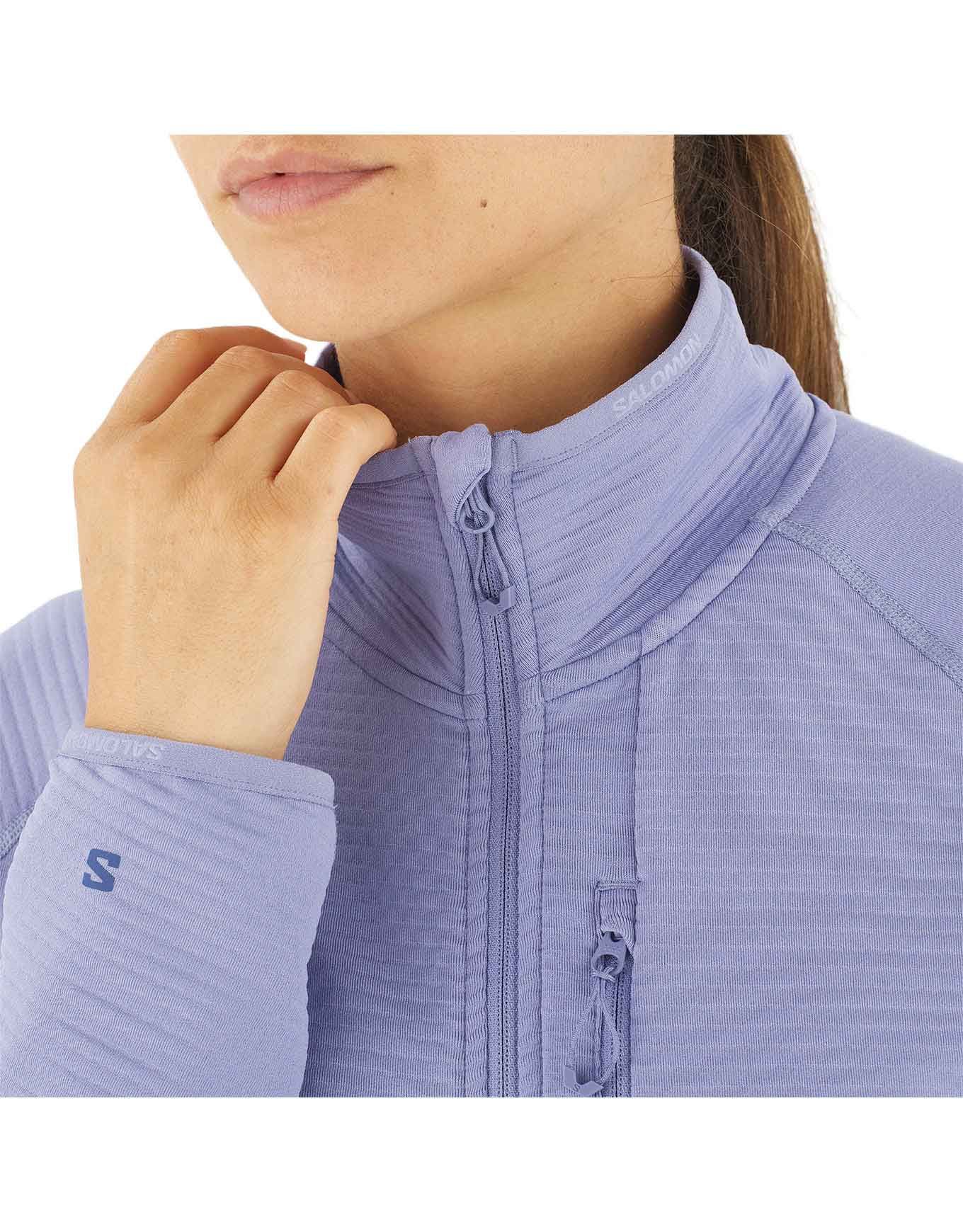 Polartechnique Salomon Sntial Lightwarm FZ Blue Granite femme : couche intermédiaire légère, chaude et respirante pour trail, randonnée ou ski.