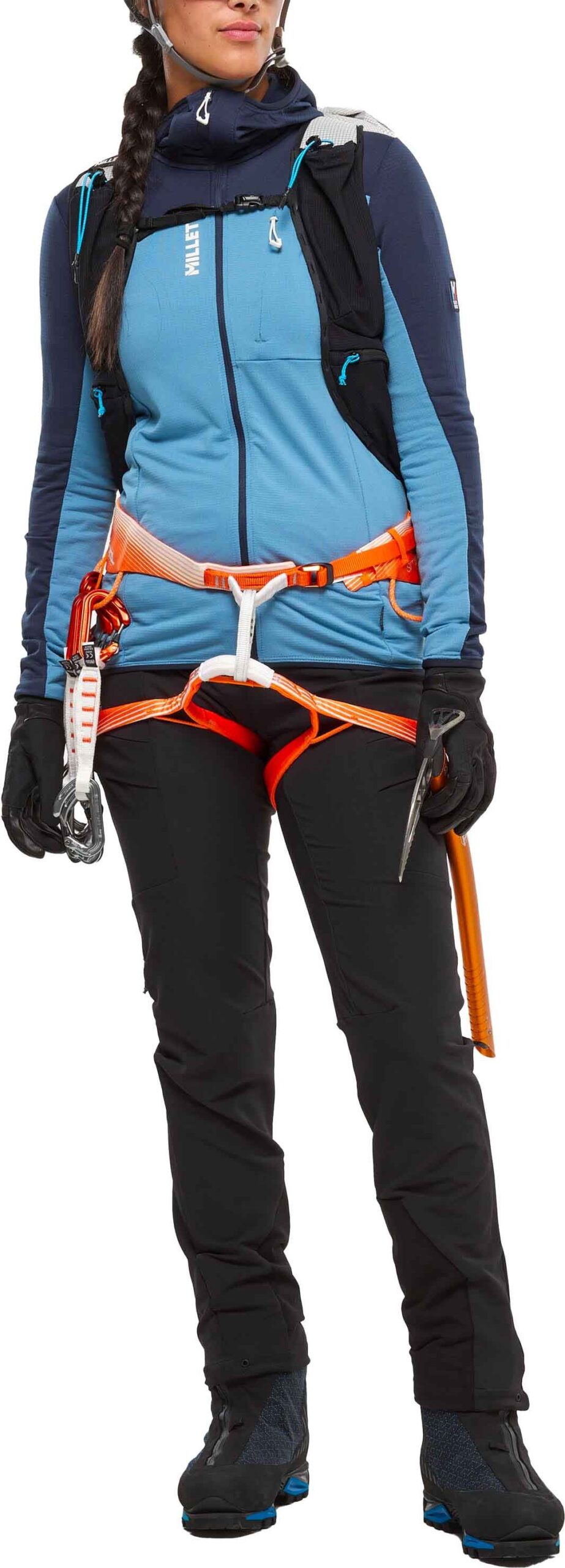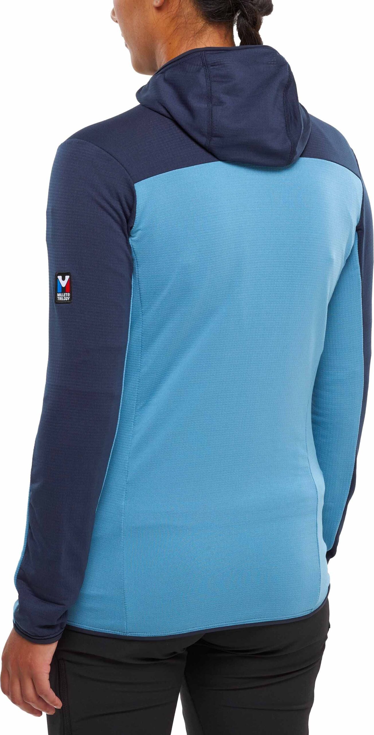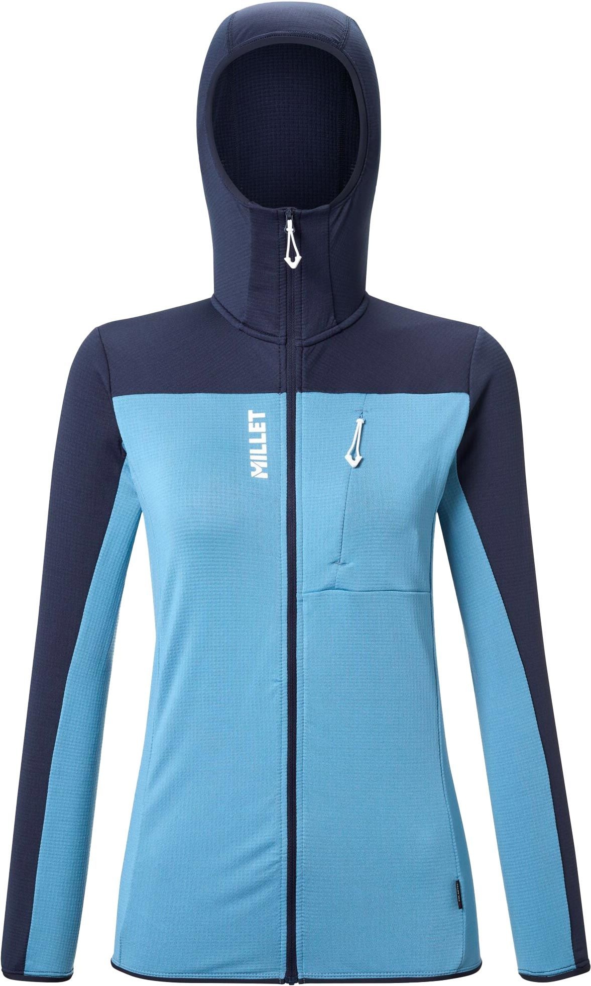 Polaire technique Millet Trilogy Icon Lightgrid HD femme en POLARTEC® Powergrid stretch recyclé, chaude, respirante, coupe ajustée avec capuche cagoule casque-compatible pour la montagne.
