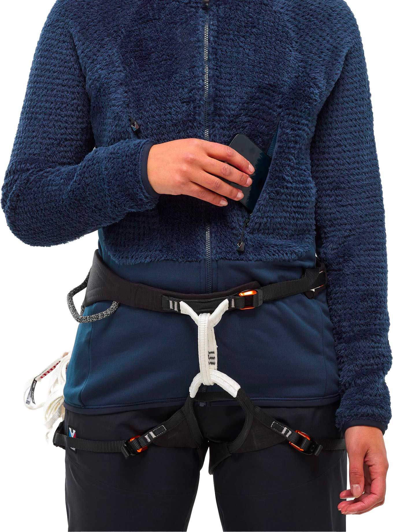 Polaire technique Millet Trilogy Icon X Loft Jkt pour femme en POLARTEC® Thermal Pro avec construction stretch Dual Tech™, zones thermiques ciblées, respirabilité optimale, fermeture zippée centrale, deux poches poitrine et poignets ajustés.