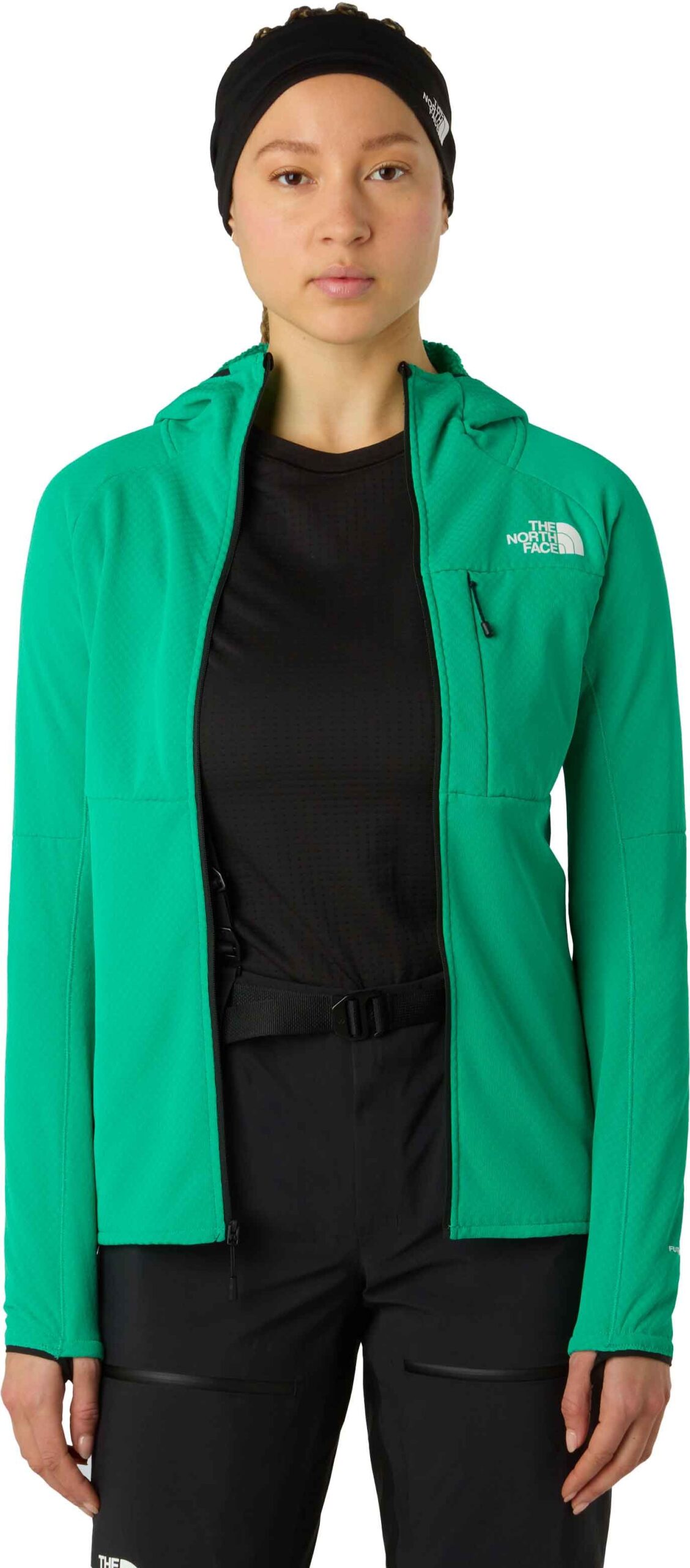 The North Face Summit Futurefleece FZ Hoodie Nebula Green femme est une polaire d’expédition FutureFleece™ ultralégue pour haute montagne, thermorégulée et compacte, épaules sans coutures compatible sac à dos.