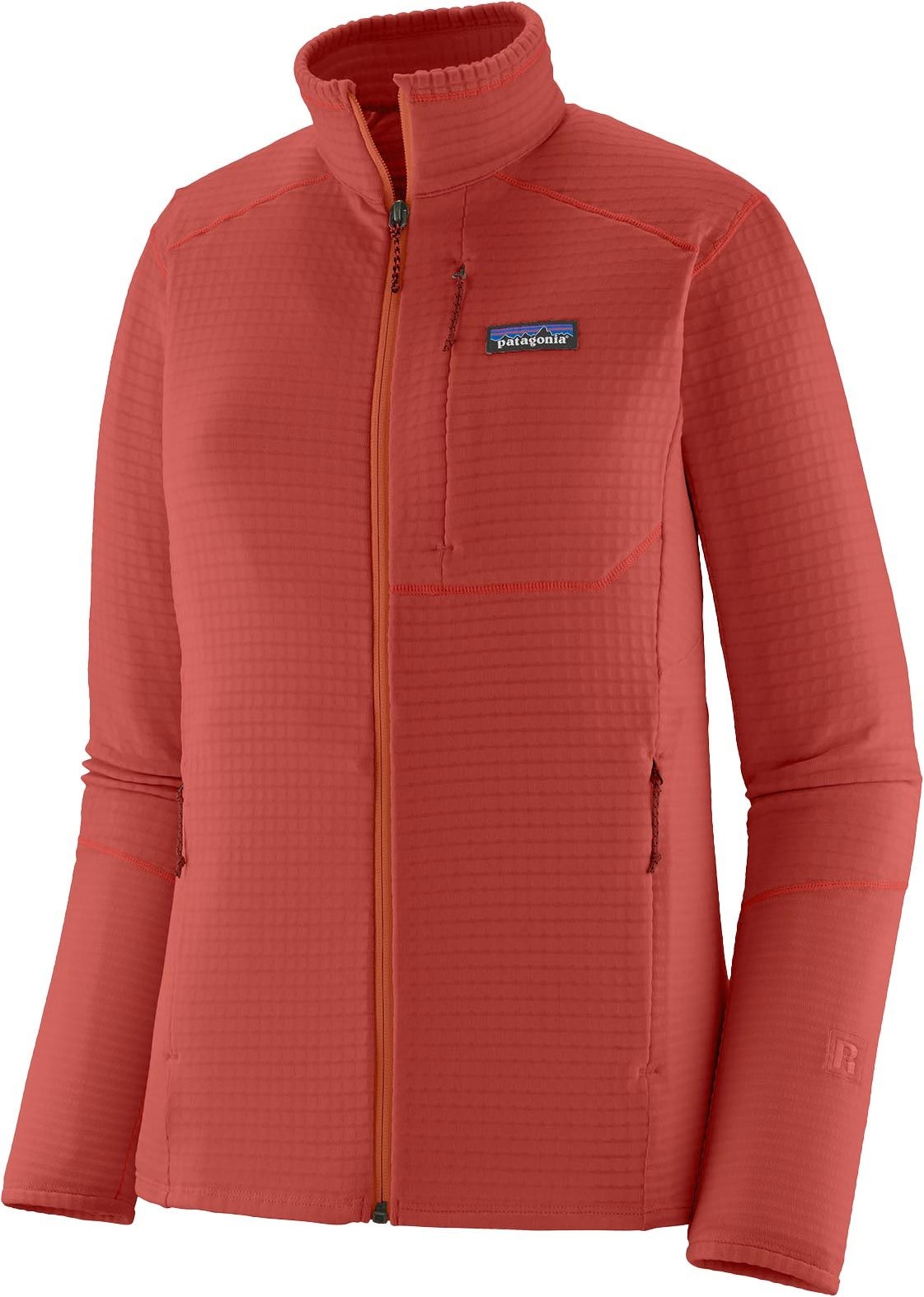 La polaire femme R1 Jkt Potters Red de Patagonia conjugue chaleur, légèreté et respirabilité grâce au tissu Polartec® Power Grid™ et au traitement HeiQ® Pure anti-odeurs; zip intégral, passes-pouces et coutures décalées assurent confort en montagne.