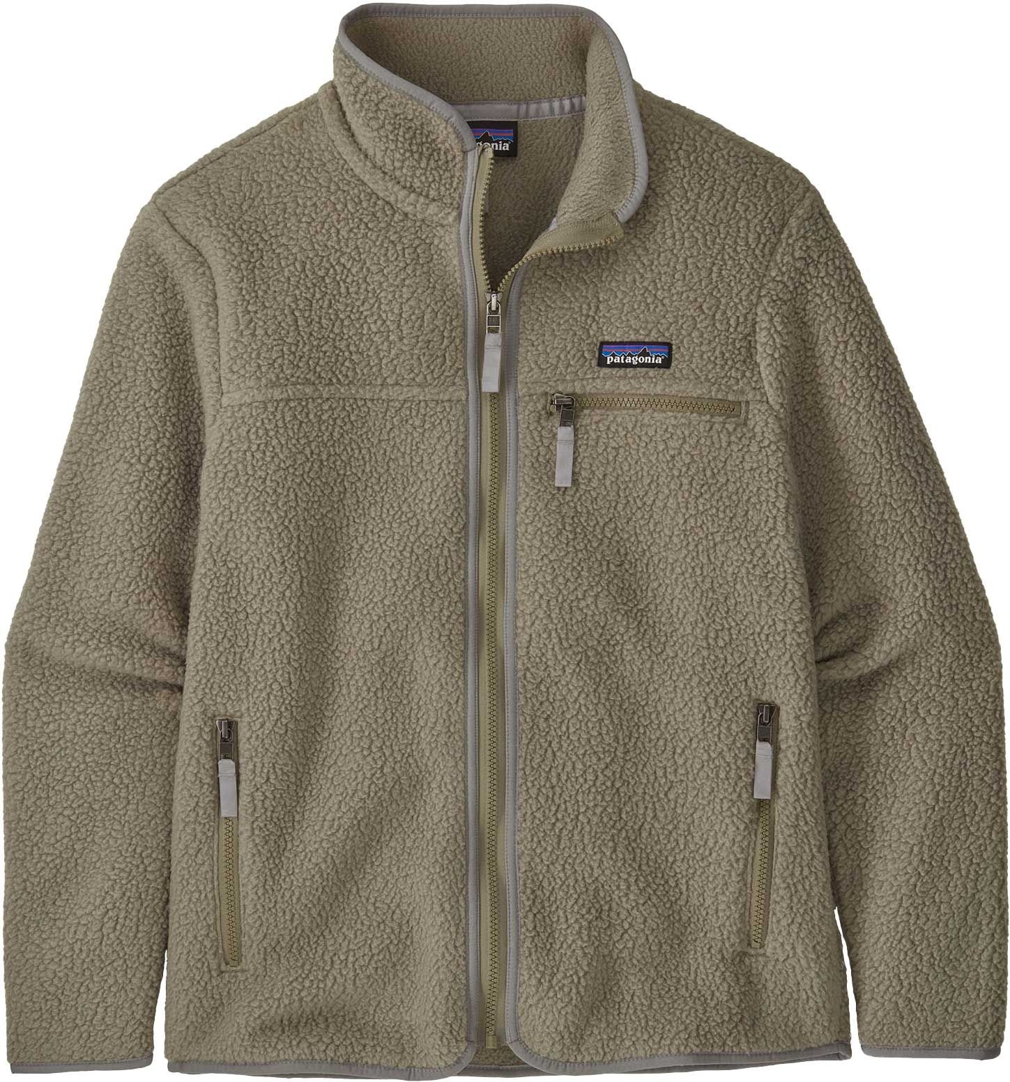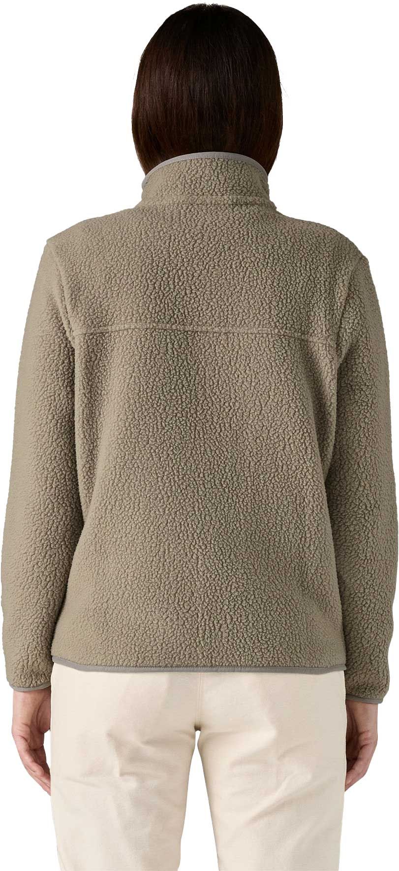 La veste polaire Patagonia Retro Pile Jkt pour femme, col montant et coloris River Rock Green, en tissu polaire imitation mouton, offre chaleur, légèreté et liberté de mouvement grâce à ses manches raglan et ses poches zippées pratiques.