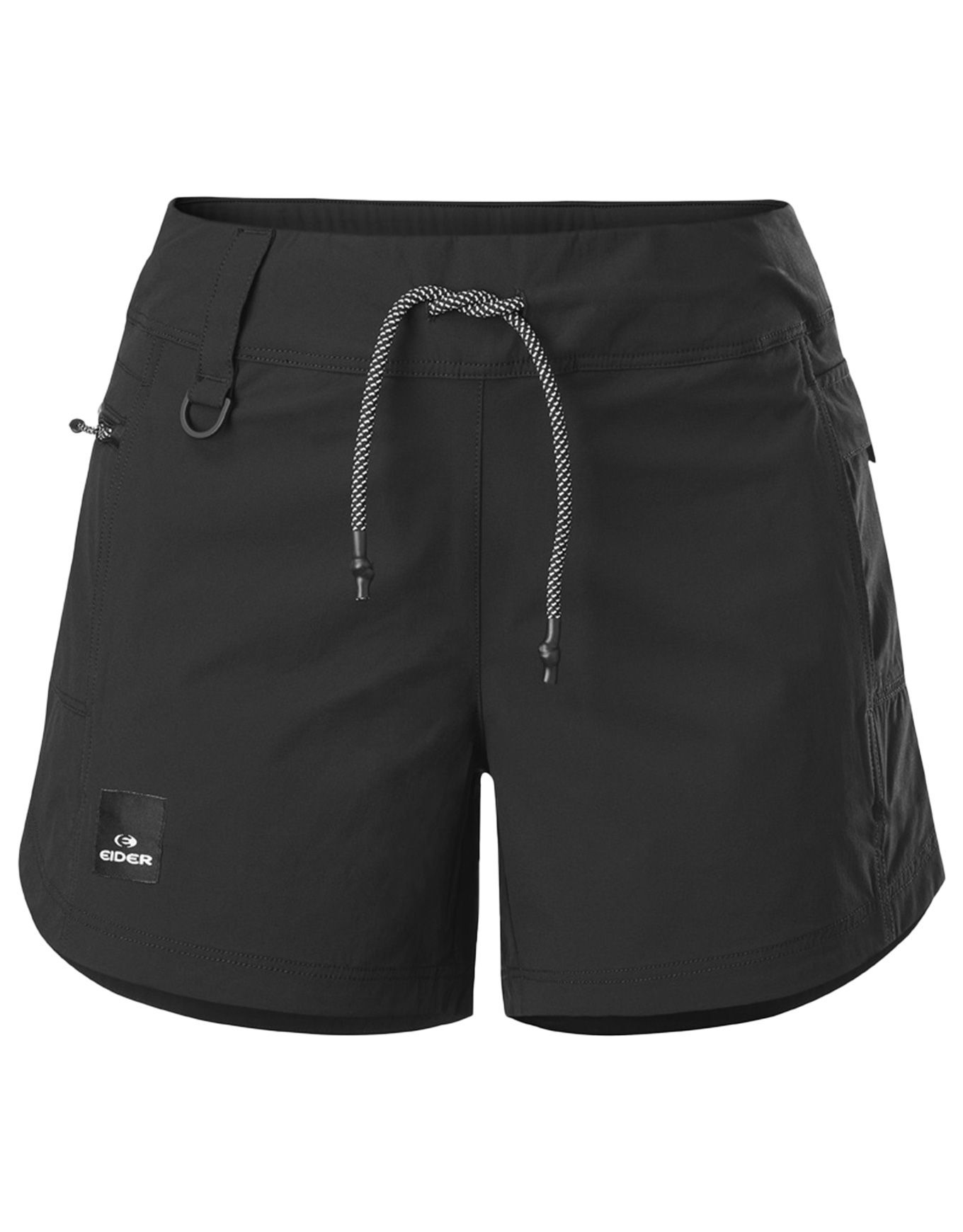 Short femme EIDER Jaunt Short Light Black en polyester recyclé, léger et respirant, sèche vite. Ceinture réglable, poches zippées YKK®, découpe féminisée.