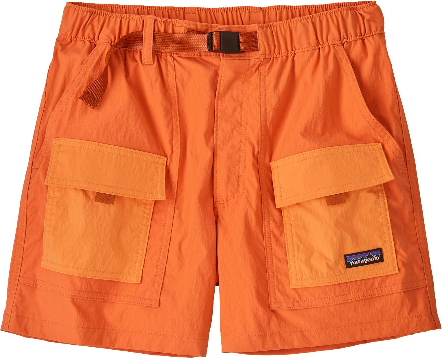 Short Patagonia femme Outdoor Everyday Rock Melon en tissu recyclé NetPlus®, confortable dans l’eau et hors de l’eau, avec poches cargo drainantes, taille élastique et ceinture intégrée.