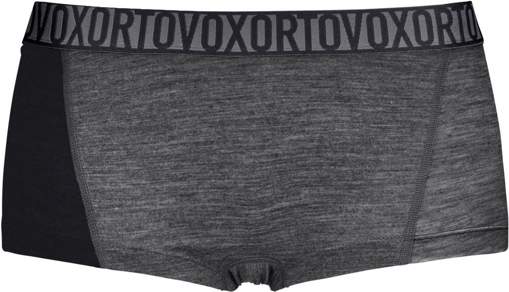 Shorty Ortovox 150 Essential Hot Pants Black Raven Blend femme, première couche mérinos/Tencel™/fibres synthétiques pour montagne : régulation thermique, évacuation humidité et fraîcheur en randonnée, alpinisme, escalade ou ski de randonnée.