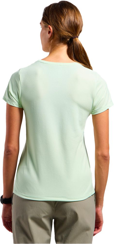 T-shirt Odlo F-Dry Ridgeline Crew Neck femme : léger, respirant et séchage rapide grâce à la technologie F-Dry, anti-odeurs Zeroscent et protection UV UPF 30+ pour les sorties estivales en montagne.