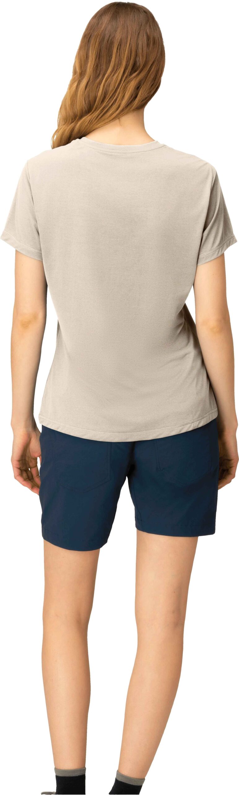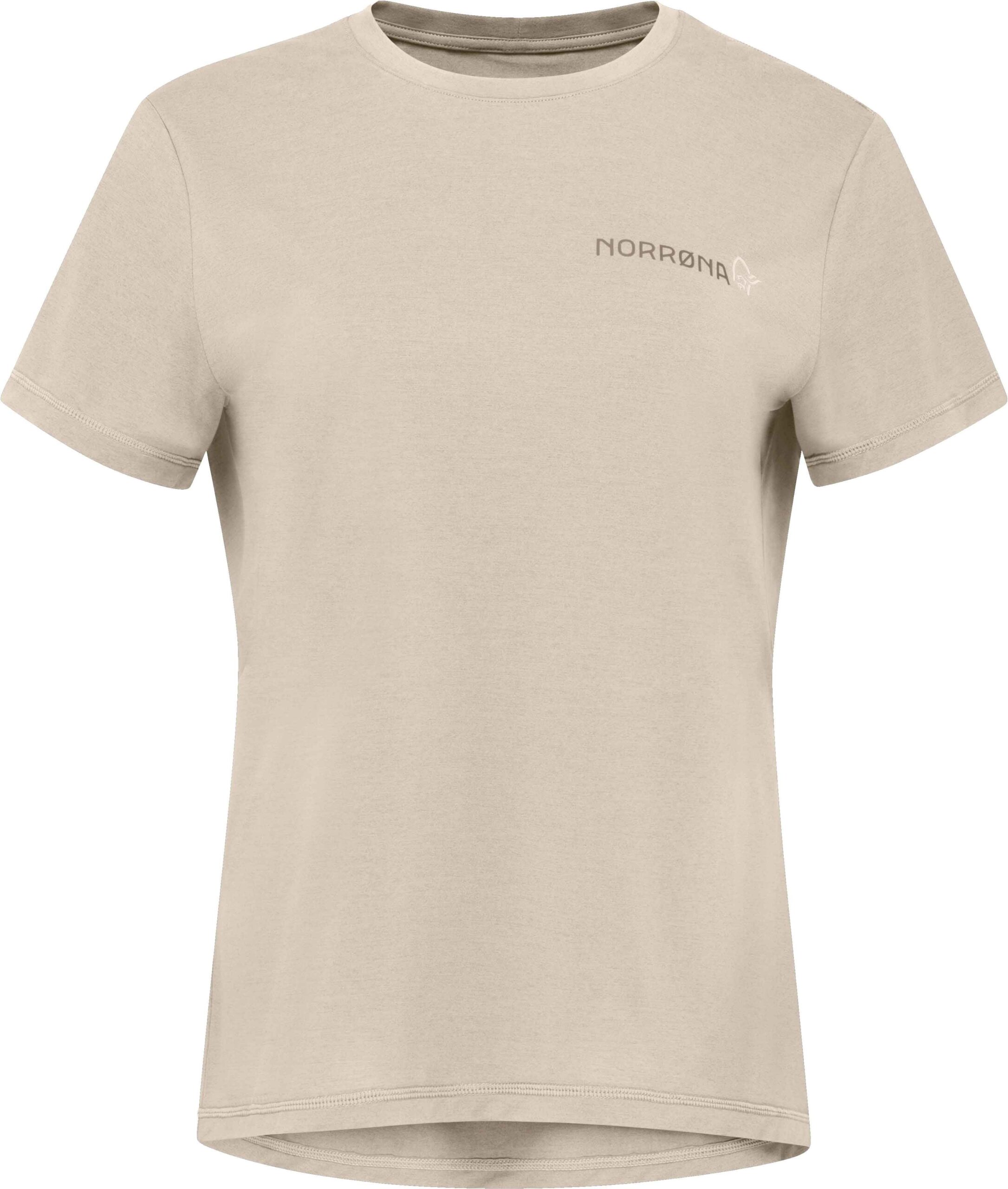 T-shirt Femund Tech Oatmeal femme Norrona en polyester recyclé, léger et respirant pour la randonnée. Évacuation rapide de l’humidité, séchage express, antiodeur HeiQ Fresh et coutures sans frottement.