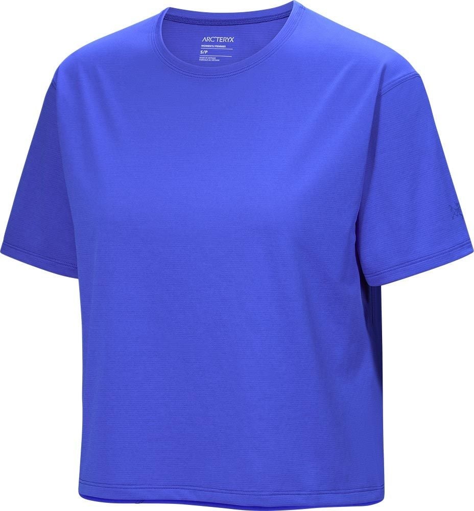 Le t-shirt femme Arc’teryx Taema Crop SS Electra Heather allie matière Phasic™ LT légère et respirante, coupe ample pour la liberté de mouvement et traitement anti-odeurs DAO™ durable pour une fraîcheur prolongée en outdoor.