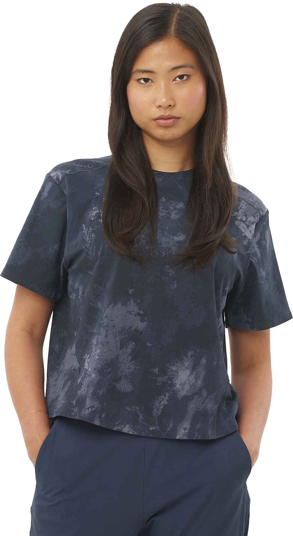 Fonctionnel et épuré, le haut de randonnée Trackline SS Tee Nights/Blue Granite de Salomon est conçu spécifiquement pour la femme.