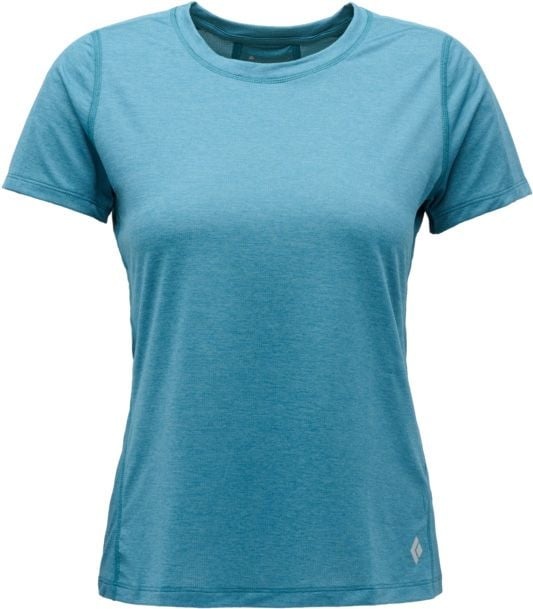 T-shirt technique femme Black Diamond Lightwire SS Tech Tee Creek Blue, stretch et respirant, anti-odeurs et réfléchissant pour escalade, randonnée et préparation physique.