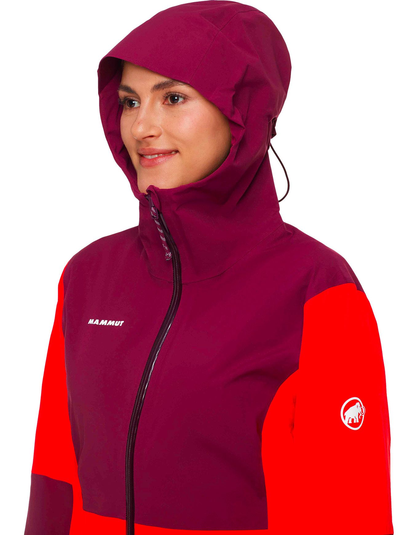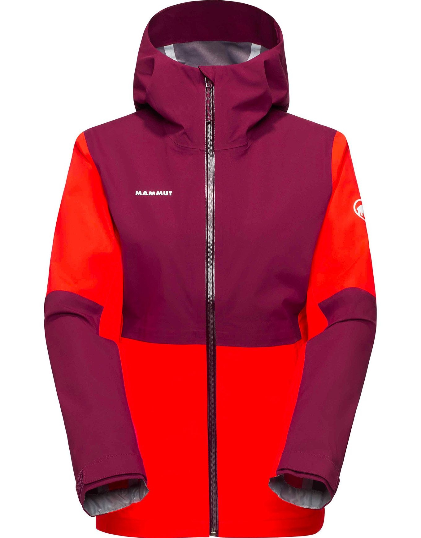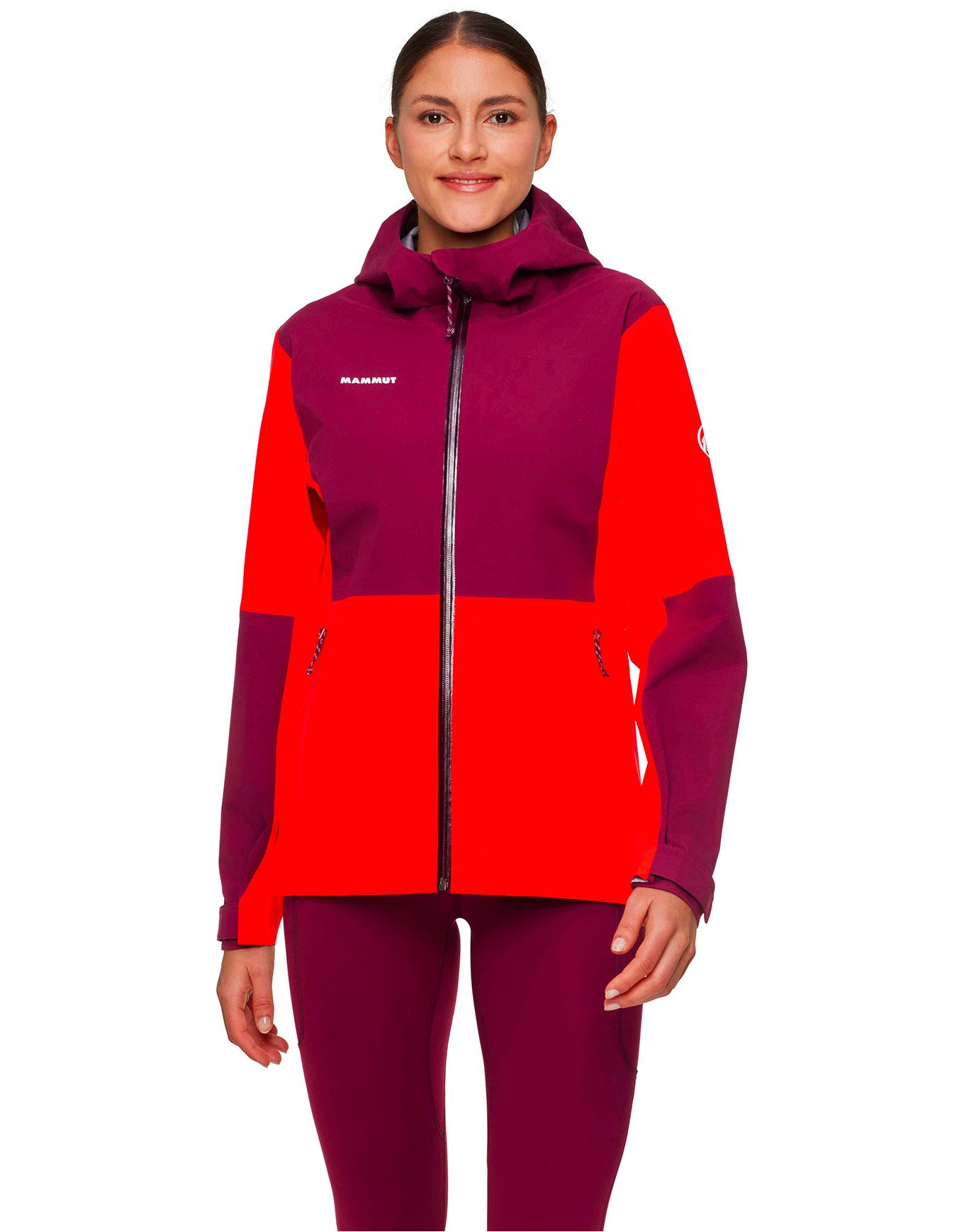 Veste randonnée femme Mammut Linard Guide HS Hooded Jacket Red Vin, membrane Mammut Dry Tour imperméable et respirante, tissu extensible, capuche réglable, poches latérales, ventilation aisselles, compressible.