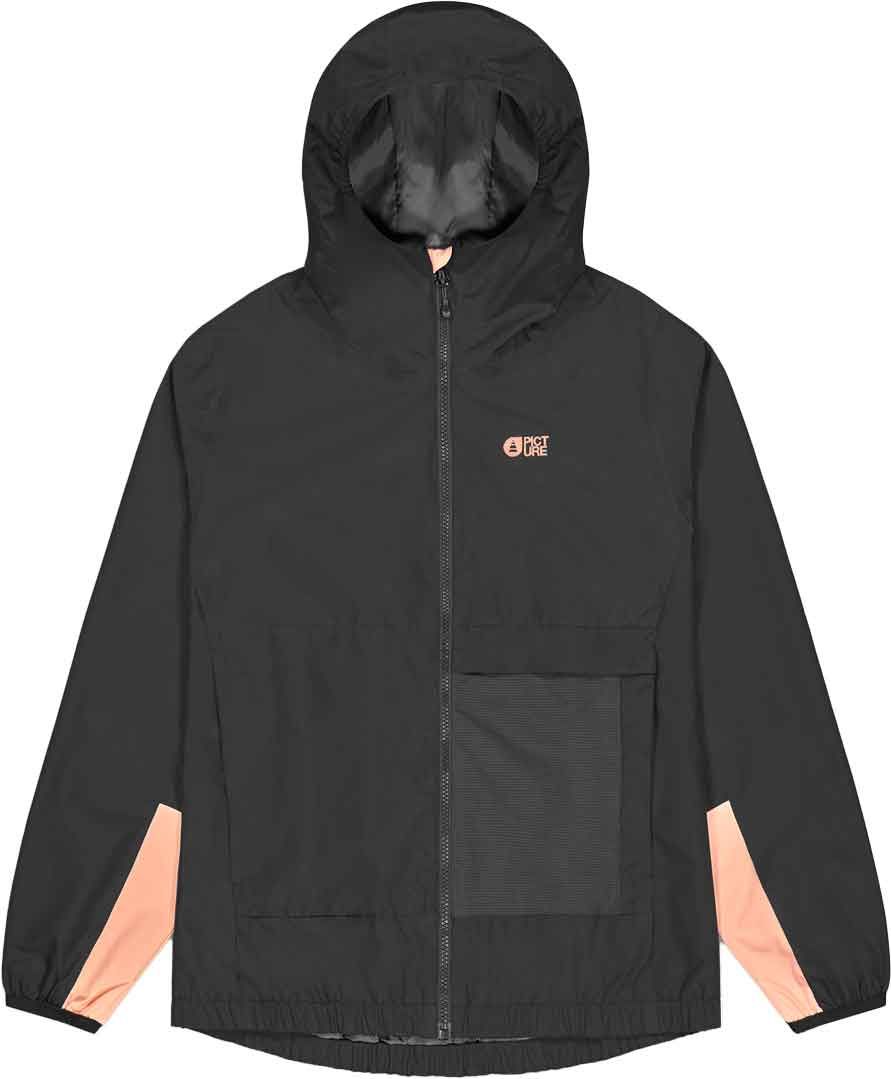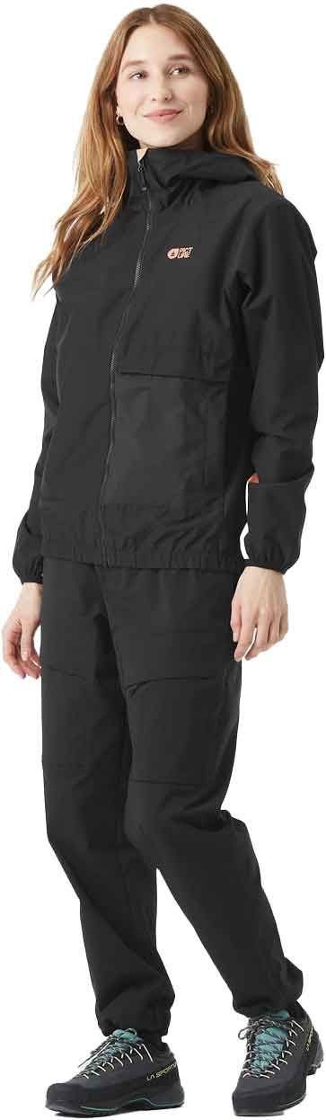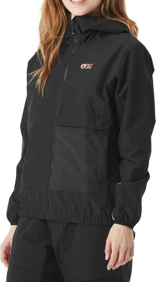 Veste technique Stall Black femme Picture Organic Clothing, membrane Dryplay imperméable, respirante et coupe-vent, capuche réglable, fermeture YKK® étanche, dos allongé et éléments réfléchissants pour la randonnée.