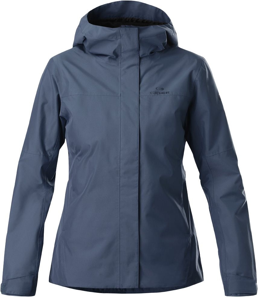 Veste de randonnée femme EIDER Sprinkle Jkt Dark Navy en tissu partiellement recyclé, respirant et résistant à l’eau, avec capuche réglable, poches harnais-compatibles et ventilation sous les bras pour un confort optimal en montagne.