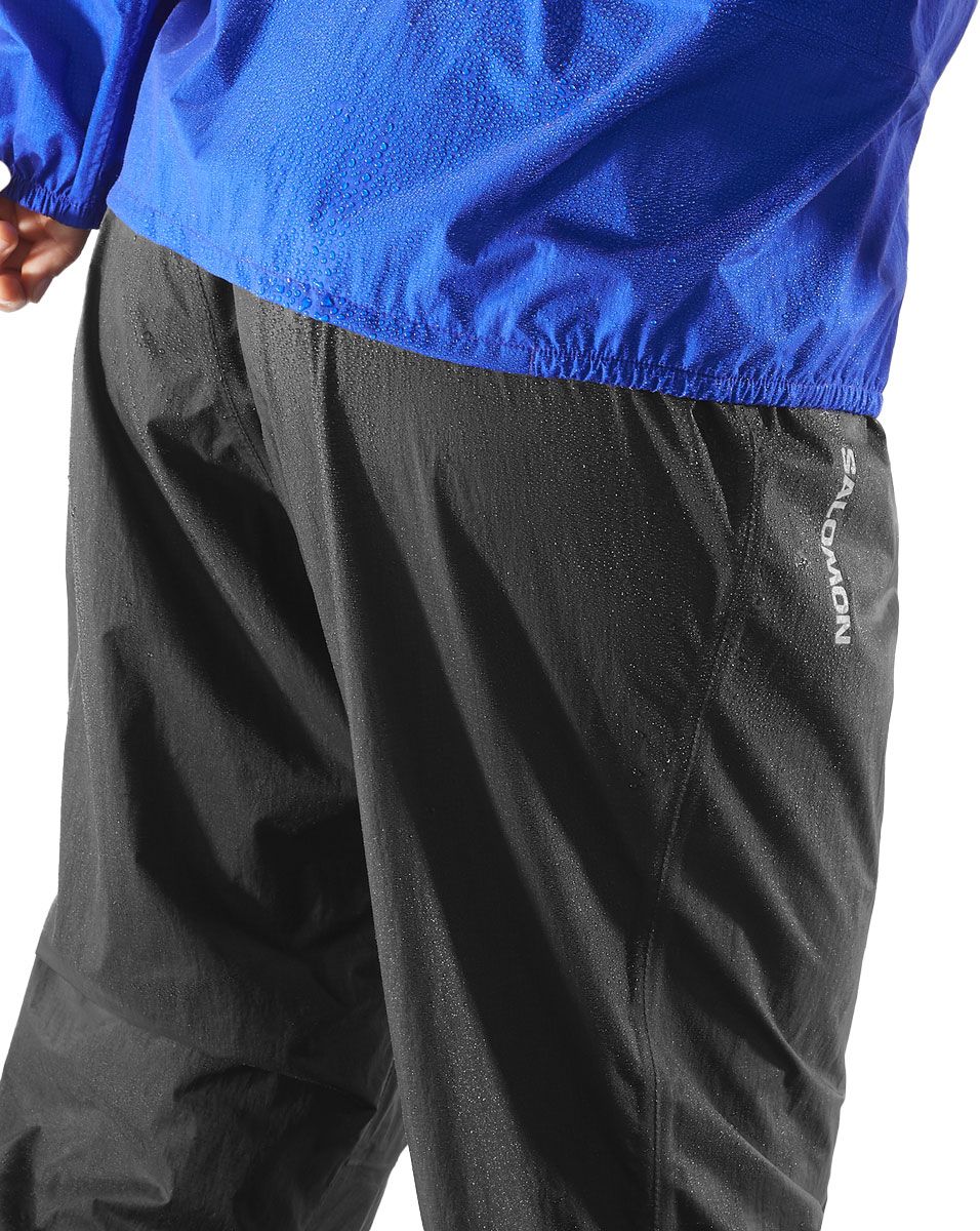 Pantalon trail Salomon Bonatti Waterproof Deep Black, unisexe, imperméable et coupe-vent avec membrane AdvancedSkin Dry respirante, stretch et compressible pour liberté de mouvement et protection durable par temps changeant.