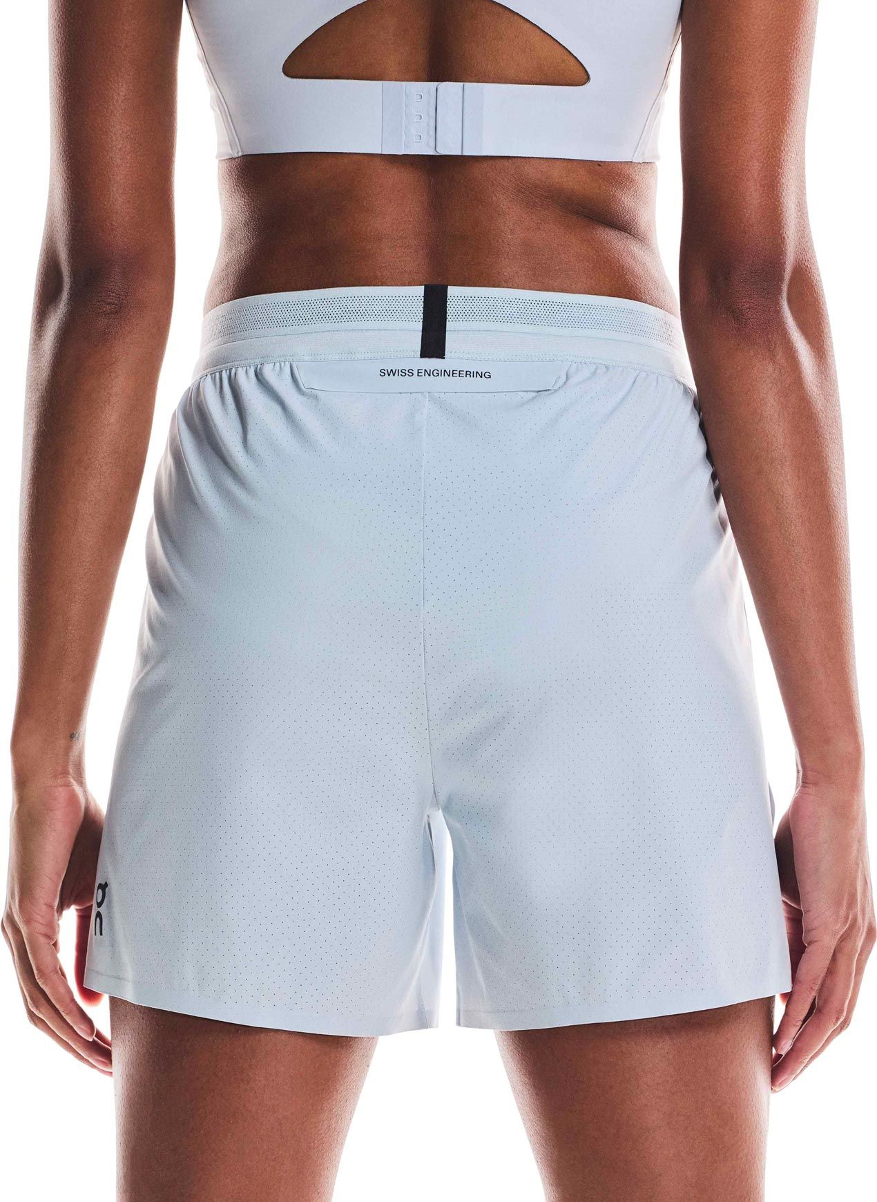 Short de running femme On Running 5″ Performance Shorts, conçu pour les séances intenses : tissu léger 4-way stretch, séchage rapide et poche zippée au dos.