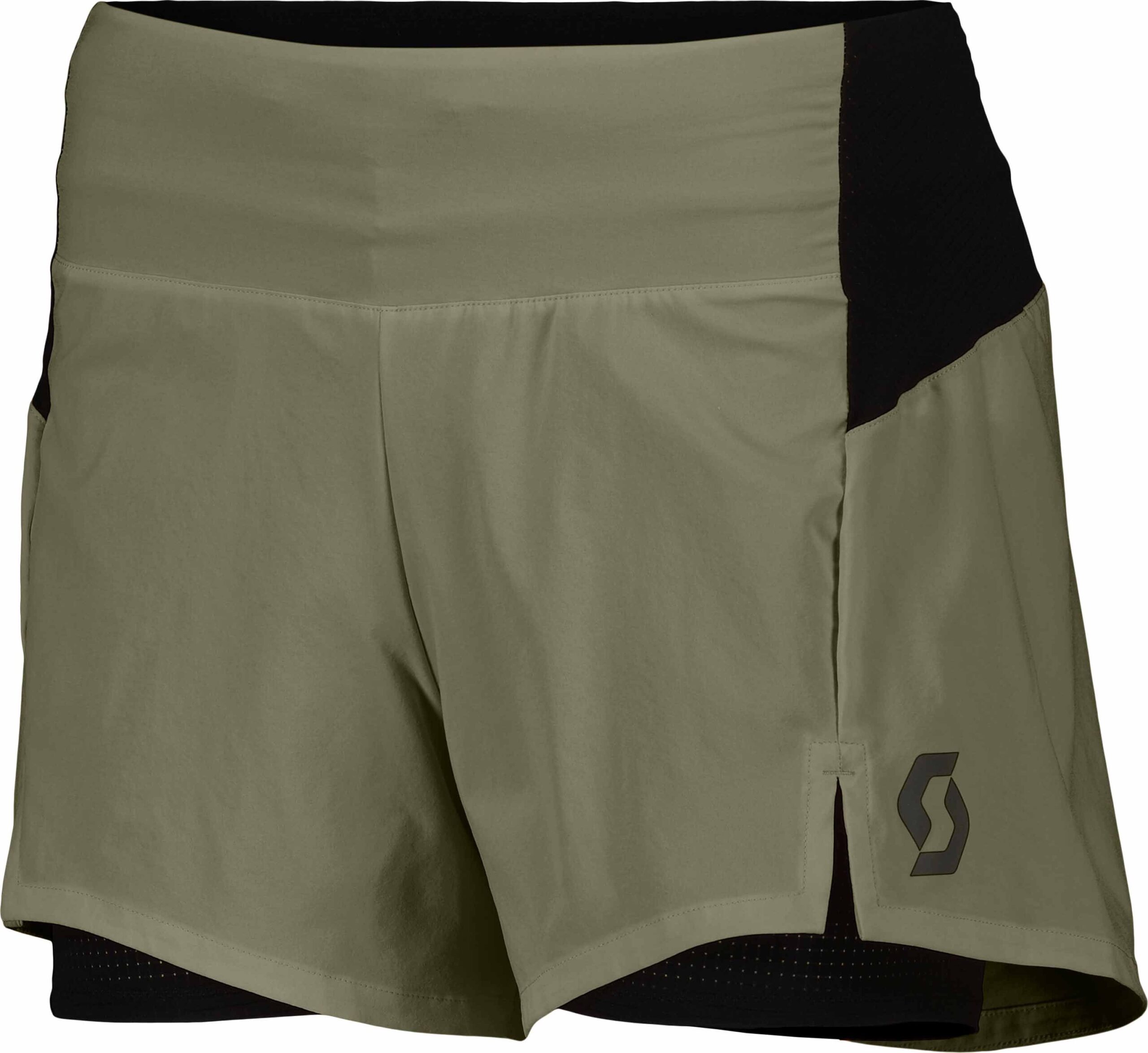 Scott Hybrid Shorts W’s Endurance Tech Hay Green : short de trail running femme ultra-léger avec doublure mesh extensible DUROxpand, séchage rapide et ceinture réglable pour un maintien fluide sur sentier.