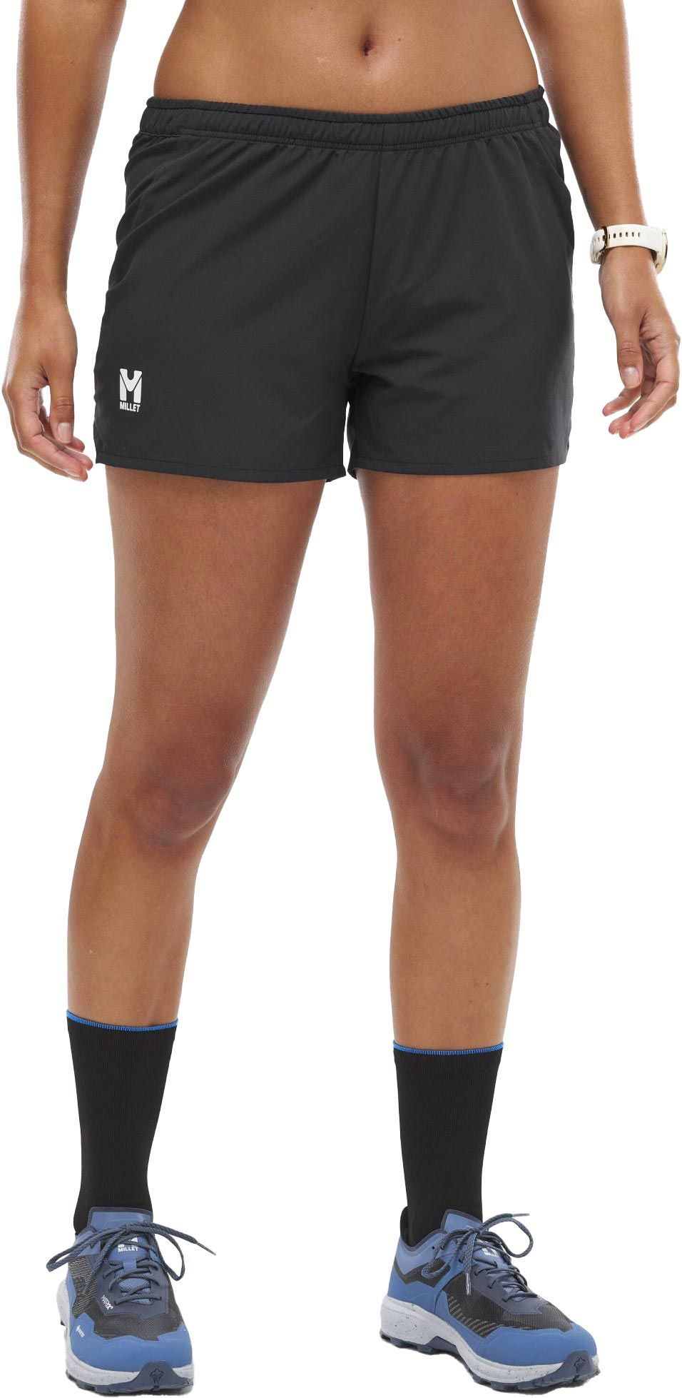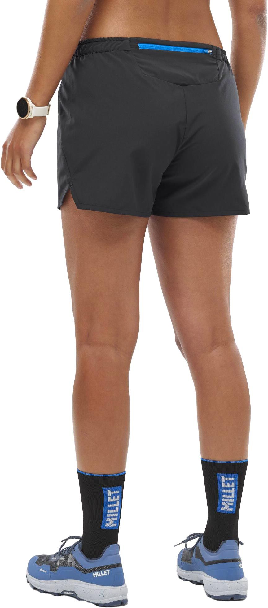 Short de trail Millet Intense Essential Short Black, coupe 5″ stretch et ceinture ajustée pour femme recherchant légèreté et confort en course. Poche zippée à l’arrière pour les essentiels.