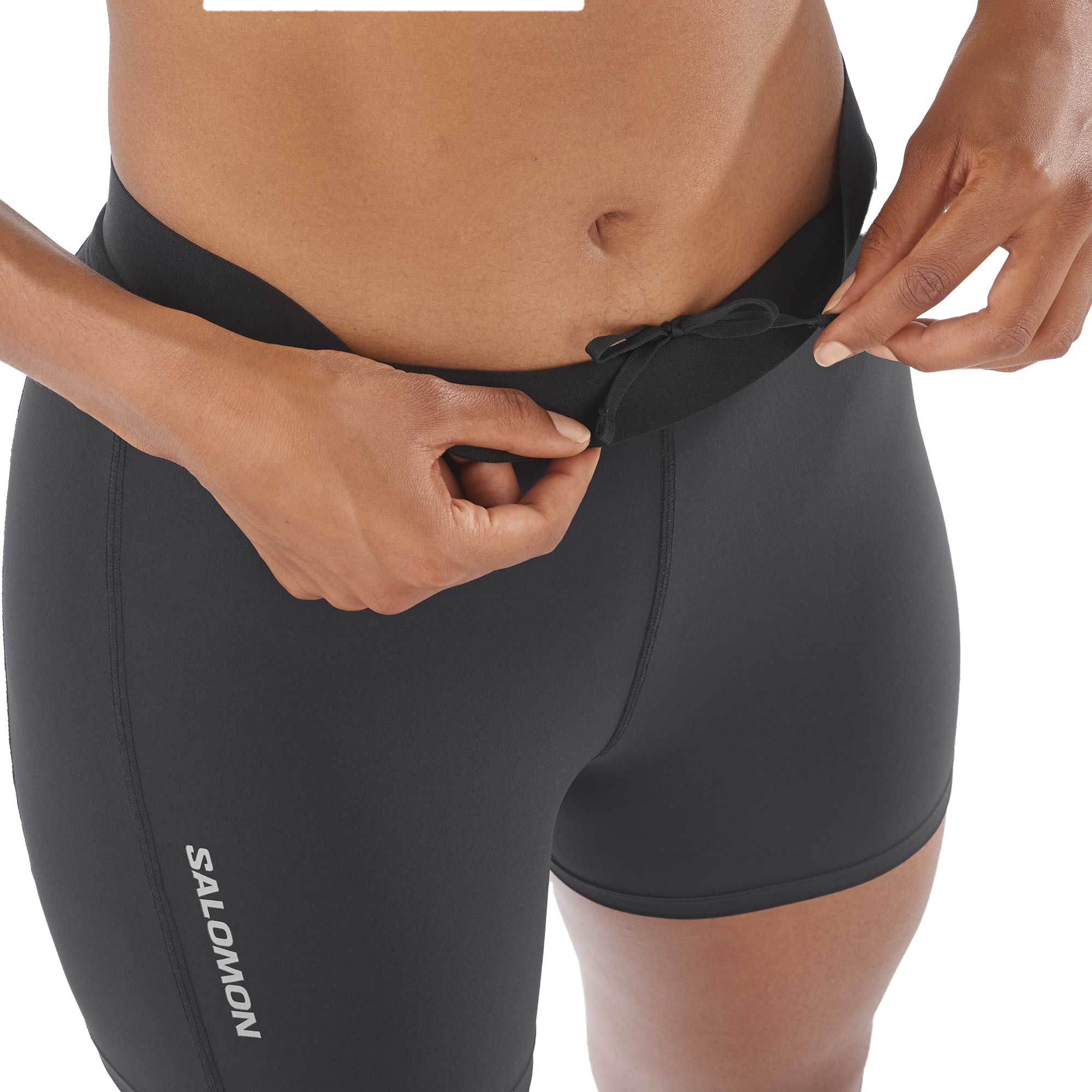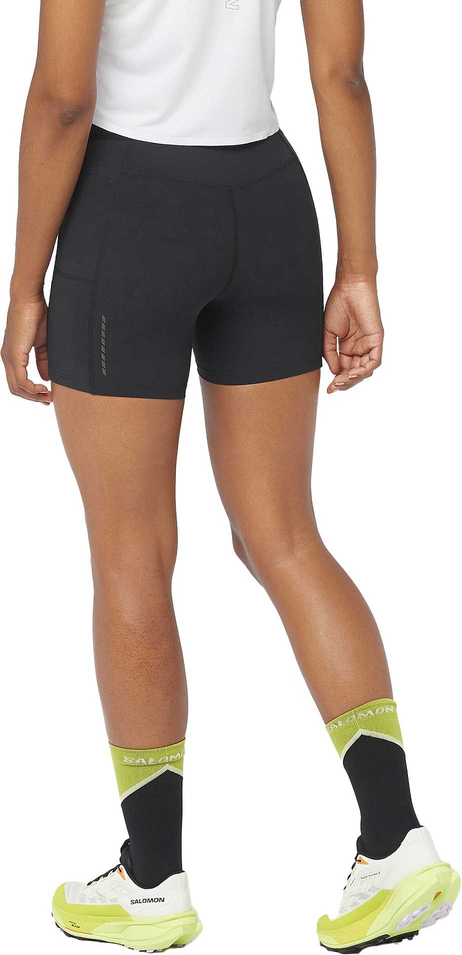 Cuissard Salomon Sense Aero Short Tights Deep Black femme, stretch ultralégère, évacuation active de l’humidité, taille réglable et poche extensible sur la cuisse pour trail et running.