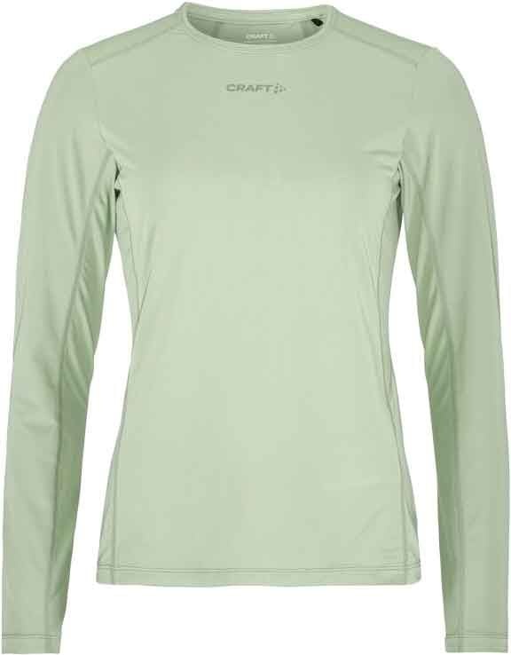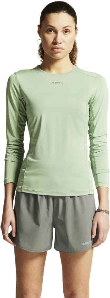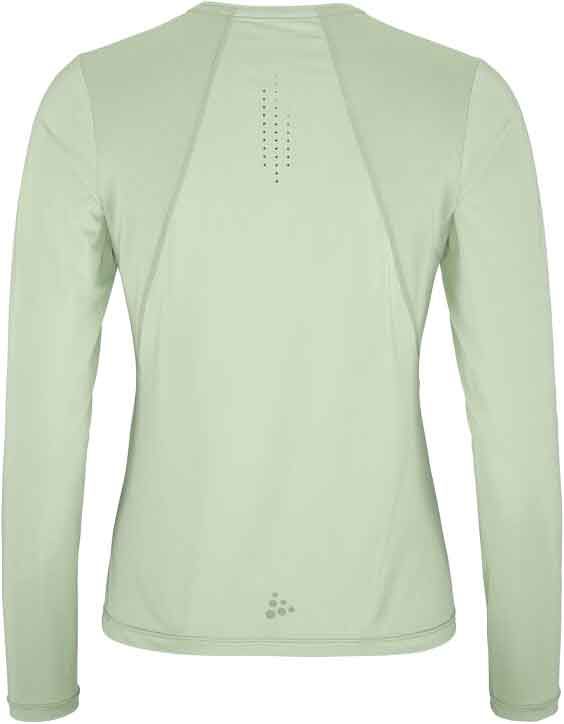 T-shirt femme Craft ADV Essence LS Tee 2 Glacial, conçu pour le running et l’outdoor. Polyester recyclé évacuant la transpiration, mesh ventilé et élasthanne pour liberté de mouvement.