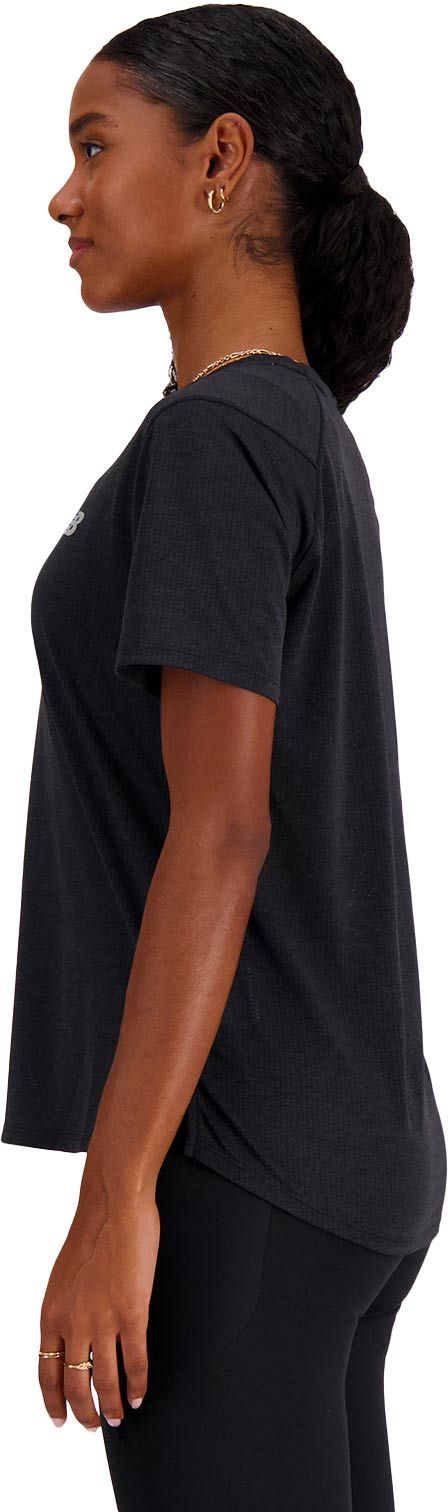 T-shirt à manches courtes New Balance Athletics pour femme, en tissu technique séchage rapide qui évacue la transpiration pour rester au sec et frais durant l’effort.