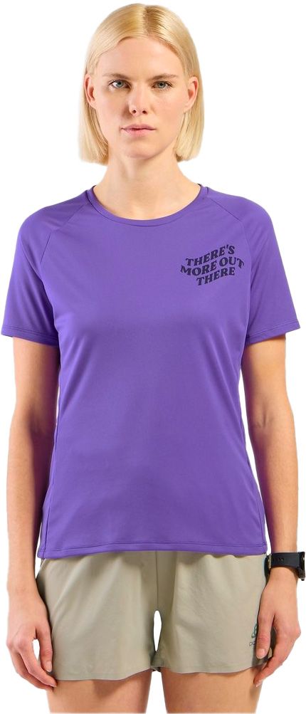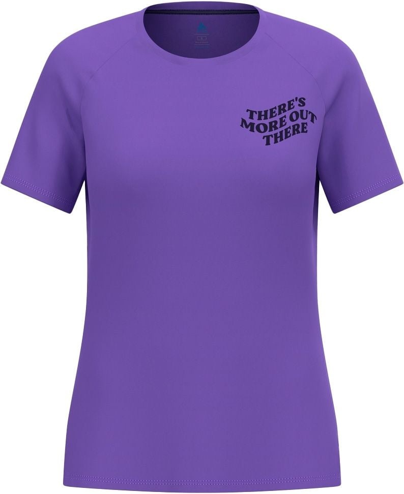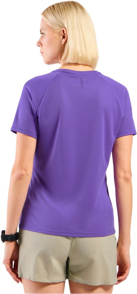 Odlo Essential Print T-Shirt Crew Neck S/S Afterparty femme : t-shirt trail/running chaud, matière recyclée légère et séchage rapide, ZeroScent neutralise odeurs.
