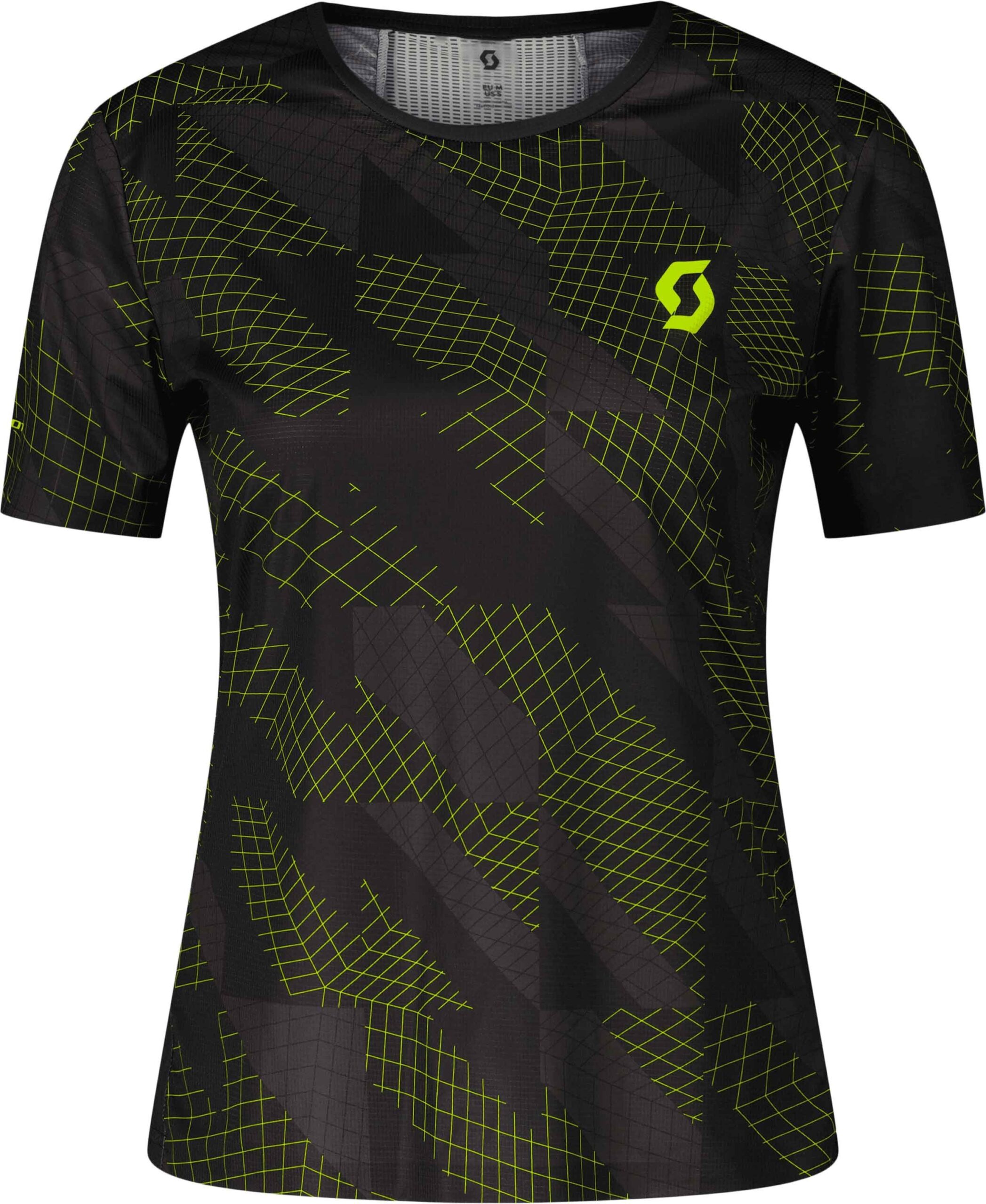 Scott RC Run SS Tee Black/Yellow, tee-shirt running femme ultra-léger à séchage rapide avec dos ultra-respirant, coupe ergonomique et coutures décalées pour un confort sans frottement.