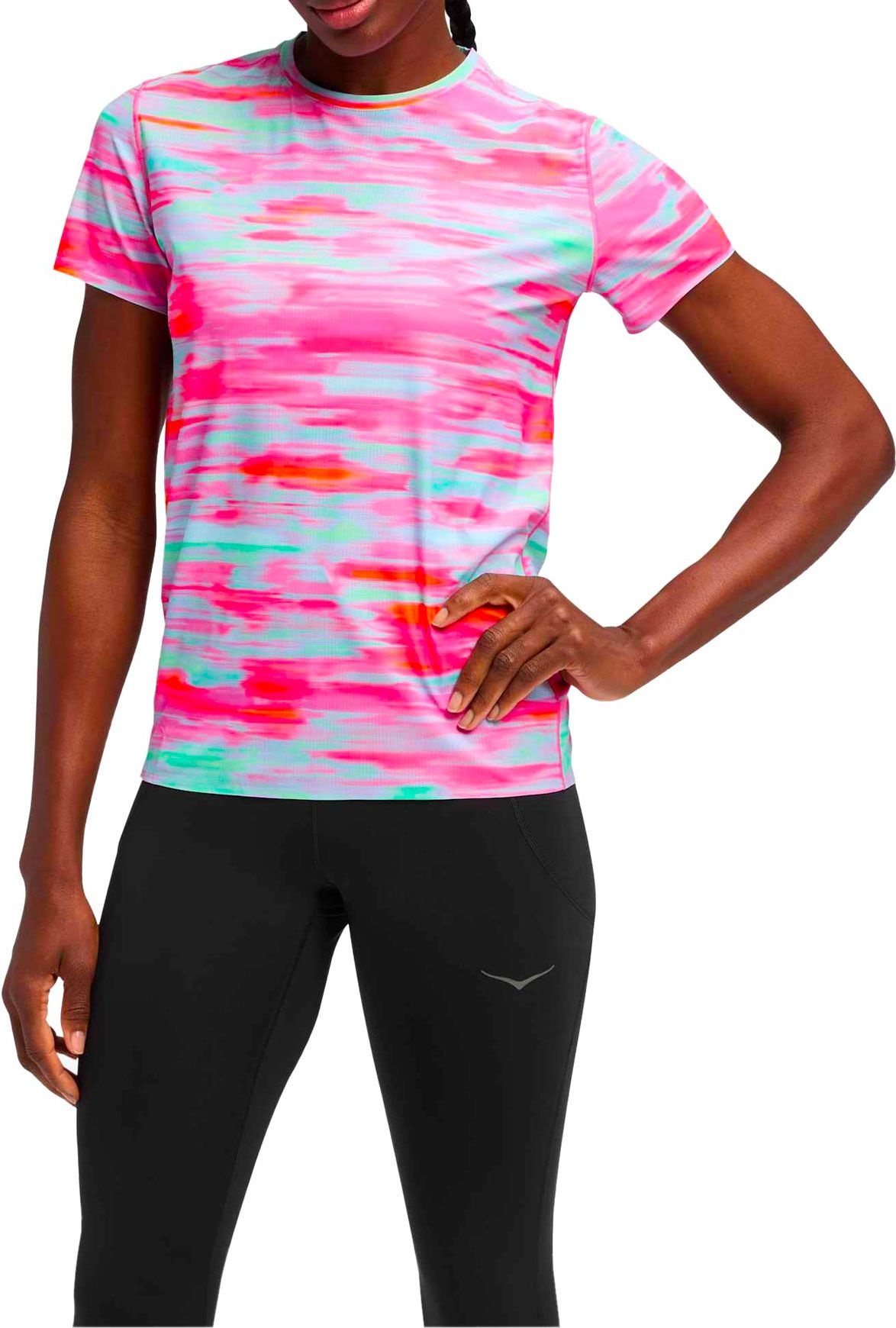 Fonctionnel, le modèle Airolite Short Sleeve 2.0 Pink Blurr pour femme signé Hoka se destine au trail et au running. Sa légèreté et sa respirabilité sont accompagnées d’un séchage rapide ainsi que d’une évacuation optimale de l’humidité. Un traitement antibactérien contribue à maintenir la fraîcheur durant l’effort, tandis que l’extensibilité du textile garantit une liberté de mouvement de qualité.