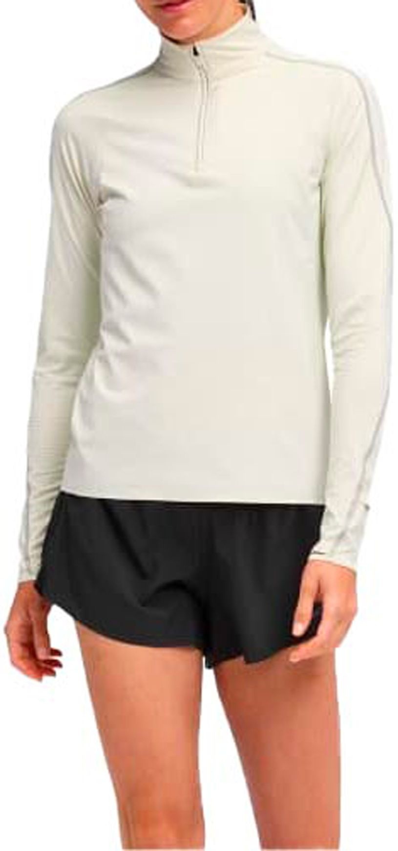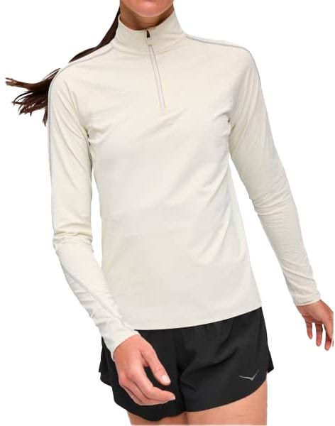 Le tee-shirt à manches longues Hoka Glide Tech Quarter Zip Truffle Salt pour femme conjugue séchage rapide, fraîcheur anti-odeurs Hei-Q Mint et détails réfléchissants pour vos sorties running.