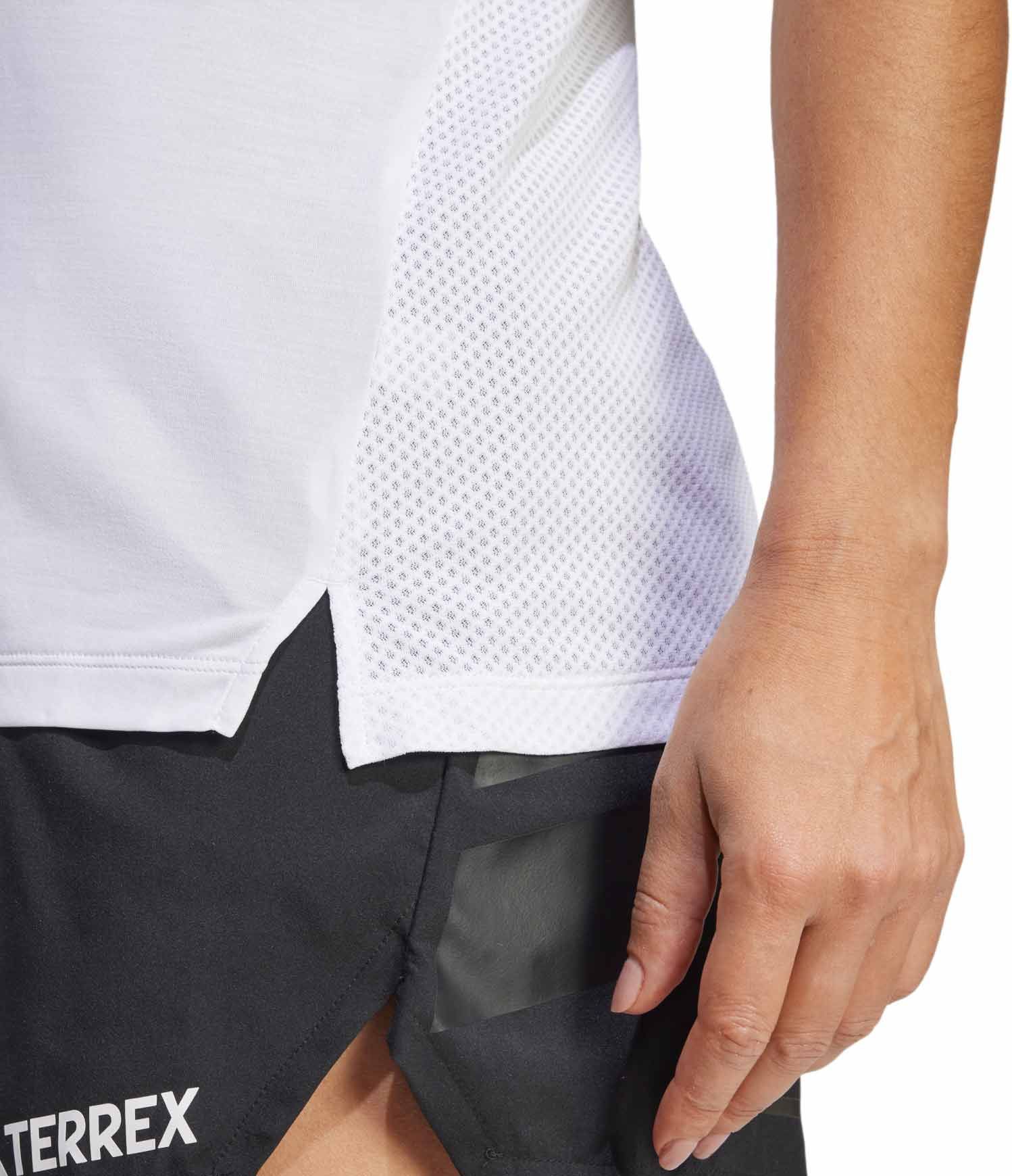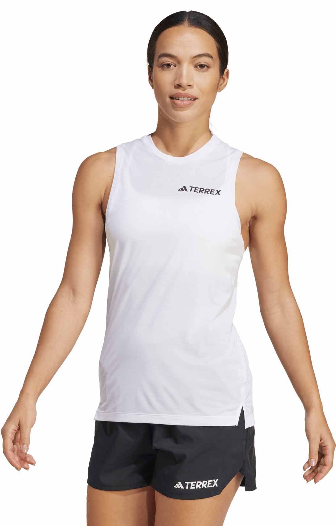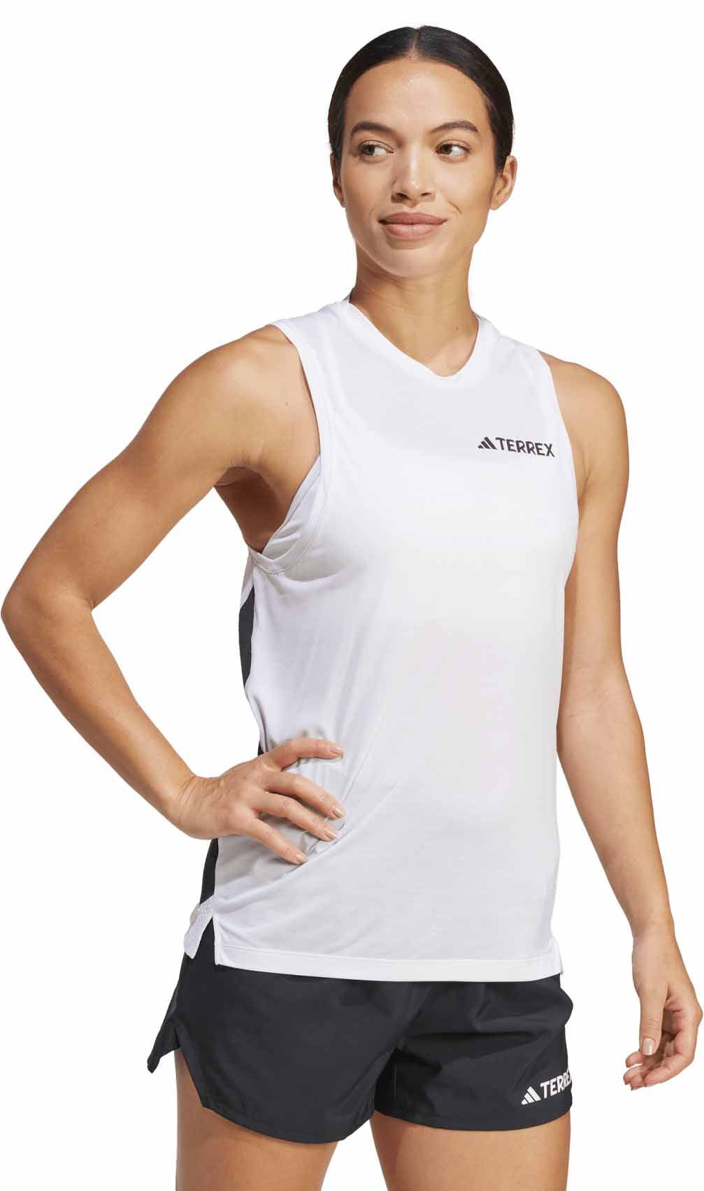 Débardeur Adidas Terrex Xperior Tank White femme en jersey léger avec CLIMACOOL+ et body mapping pour une ventilation ciblée, séchage rapide et traitement Polygiene anti-odeurs.